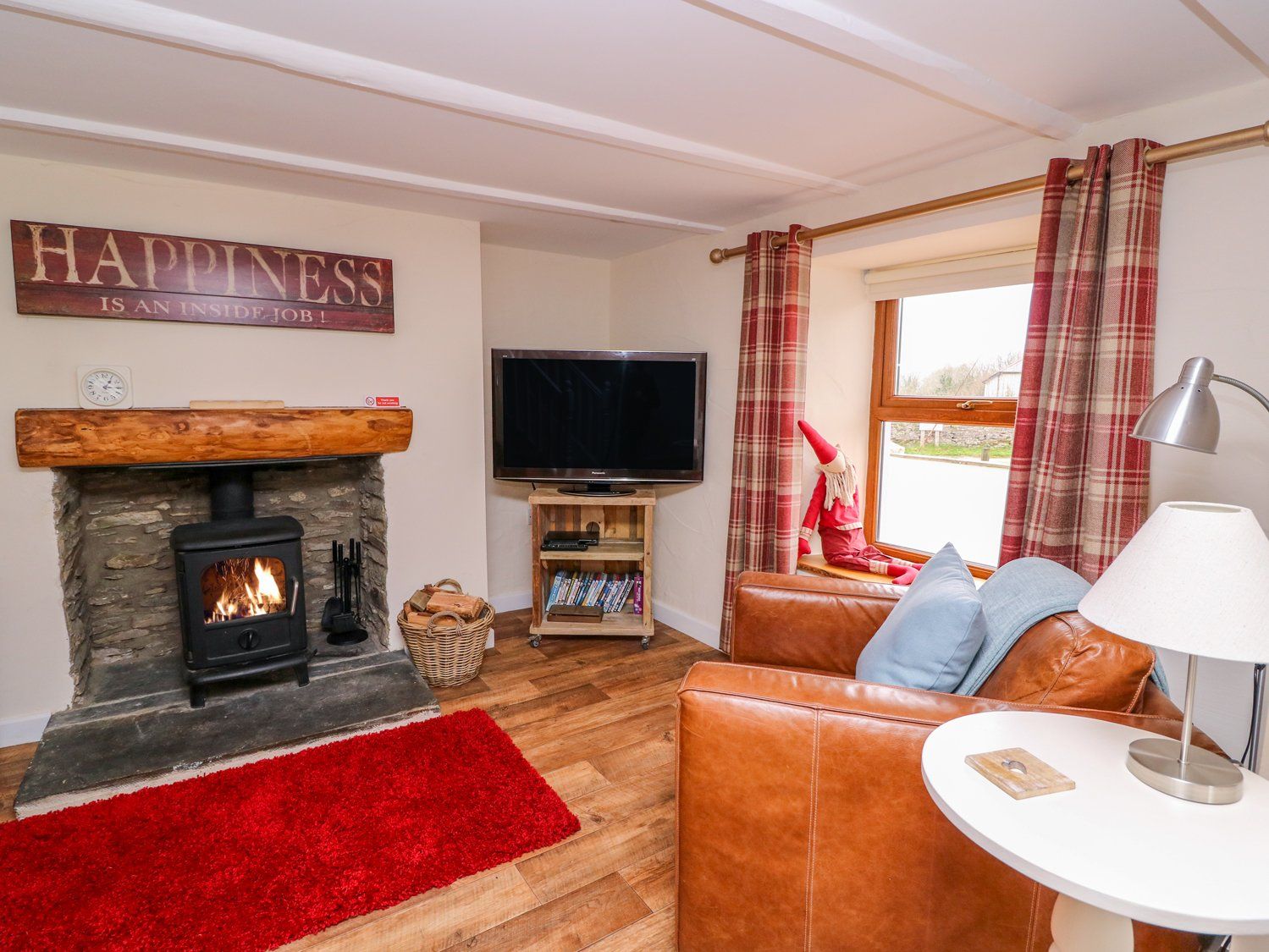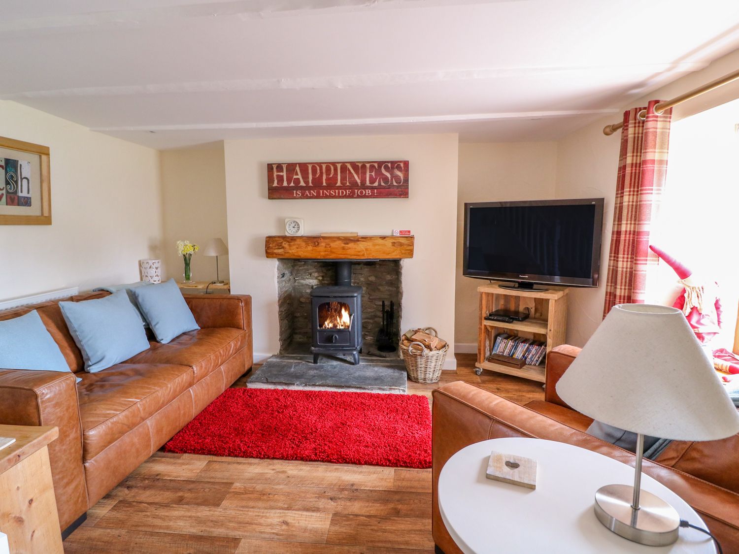LPG central heating with woodburner. Electric oven and 5-ring gas hob, microwave, fridge/freezer, washing machine, dishwasher, 3 x TVs with Freeview, DVD, WiFi (Fibre). Fuel, power and starter pack for woodburner inc. in rent. Bed linen and towels inc. in rent. Roadside parking on first come, first served basis outside property, additional parking available opposite in communal parking area. Enclosed, split-level garden with raised deck area and patio with furniture. One well-behaved dog welcome - No Cats Can Be Accepted At This Property. Sorry, no smoking. Shop and pubs 3.3 miles. Please note: Mobile signal is good for EE but variable for other networks.