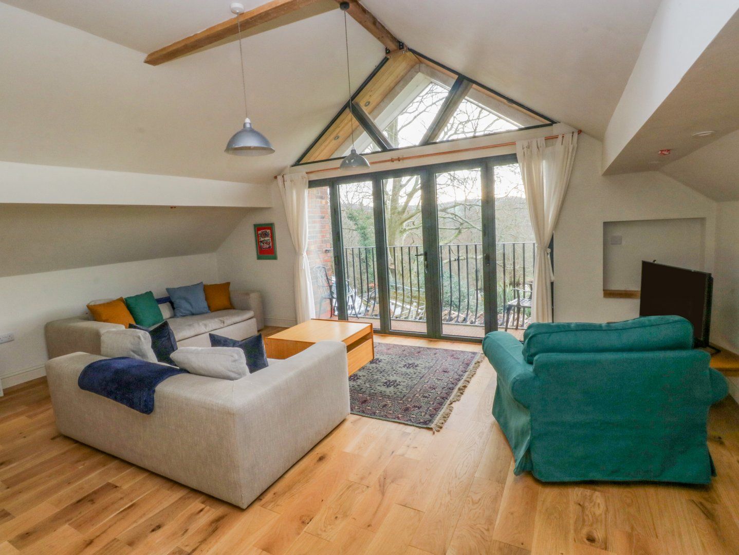 This reverse-level barn conversion has two bedrooms, a double and a ground-floor double, along with a ground-floor bathroom, a first floor wet room, a first-floor kitchen/diner, a utility and a first-floor sitting room with Juliet balcony. Appliances include an electric oven and hob, microwave, fridge, freezer, washing machine, condenser dryer, and dishwasher and for entertainment, there is a Smart TV and WiFi. A travel cot, highchair and stairgate are available and fuel, power, bed linen and towels are all included in the rent. Outside, there is ample off-road parking and a courtyard with furniture BBQ. One well-behaved pet is welcome(additional charges apply), however no smoking. You can find a shop and pub within 1.8 miles. Note: There is an unfenced pond so children must be supervised at all times. Note: Dogs must be kept on a lead and supervised at all times due to a pond, and they must also be dog and cat-friendly, as the owners have their own cats and dogs. Make memories at Green Grove Barn. Note: The lane is currently undergoing some improvement work and is due to be tarmacked soon - please bare with us during this time and drive with care.