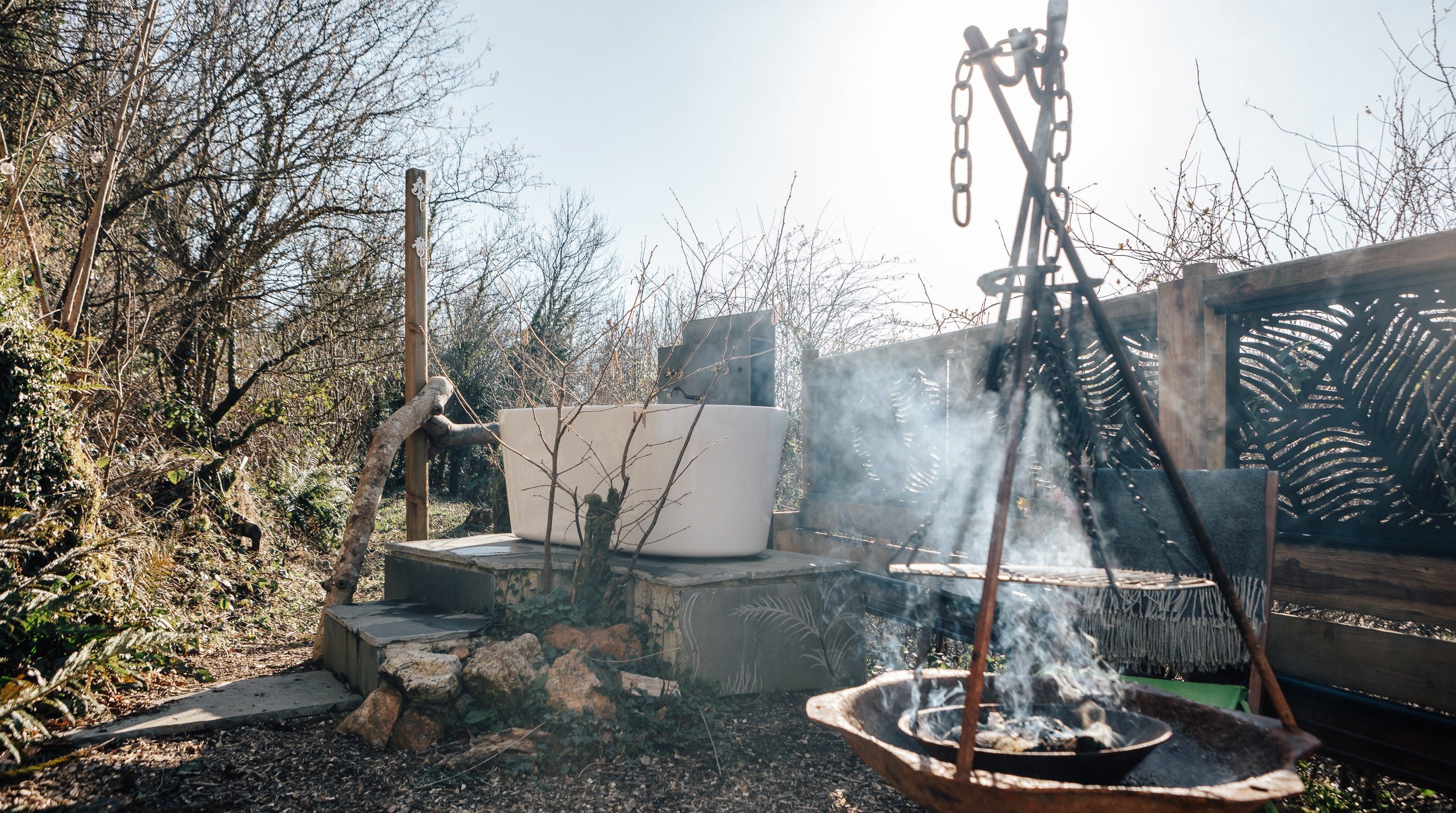 There's a retreat from the world, and then there's this home – a quaint and spacious nest of rooms on a West Wales Alpaca farm. It's just you, your wood burner and the Alpacas. Spend your day in the wood-built cabin, where you'll find the kitchen and squashy sofa by the wood-burner – perfect for a writing retreat. Head across the decking to the self-contained apartment above the main house. Here you'll find your super-king bed, en-suite and a snug lounge area overlooking the Alpaca fields. Enjoy your private, secret garden set in the woodland where owls hoot and hedgehogs rustle. There's a fire pit for chilly evenings, a woodland barbecue area and an outdoor bath with a backdrop of towering trees is the cherry on top. Tucked into the ancient landscape of Carmarthenshire there are 200 miles of coastline wrap around and three coastal towns within thirty minutes drive. And then there are your immediate surroundings; a hammock on your decking and ten acres of land with roaming alpacas and river frontage, all in a cosy hamlet. Perfect when you need to retreat from the retreat.