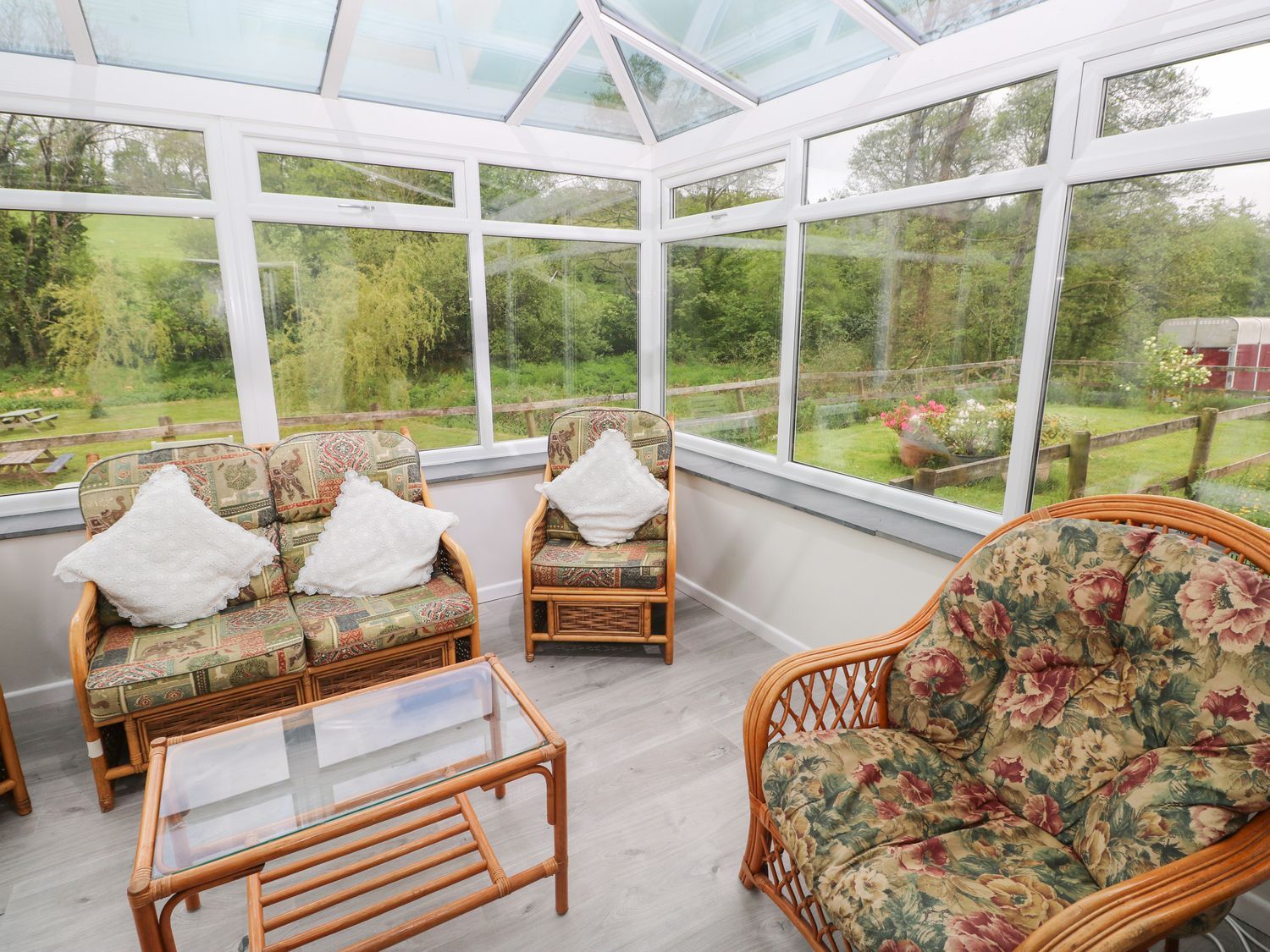 Accomodation Details Two bedrooms: 1 x double, 1 x twin. Bathroom with bath, shower over, basin, and WC. Ground-floor shower room with walk-in shower, basin, and WC. Kitchen/diner. Sitting room with woodburning stove. Two additional pull out beds can be used upon request Fully furnished conservatory
