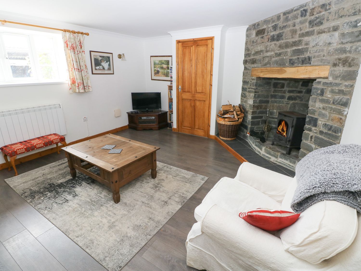 Amenities Electric central heating. Electric oven and hob, microwave, fridge, washing machine, dishwasher, kettle, toaster. TV with Freeview, DVD player, WiFi, selection of books, games, and DVDs. Fuel, power (up to £100 per week and any additional must be paid to owner) and starter pack for stove inc. in rent, additional fuel can be purchased from owners. Bed linen and towels inc. in rent. Travel cot, highchair, and two single folding beds on request. Ample off-road parking. Lawned garden with patio and furniture plus secure area for dogs. Well-behaved dogs welcome. Sorry, no smoking. Shop 0.9 miles, pub 0.8 miles. Note: Next to owner’s livery yard, own horses welcome, stabling and turnout available by prior arrangement and at extra cost. Note: Please bring own beach towels. Note: Both floors are on split-levels with some internal steps. Note: Use of owner’s freezer and first-night meal can be provided on request and at a cost; please ask the owner for more details. Note: Electric vehicles are not permitted to be charged at the property. Please note: 7-night stays at this property can only start on a Friday. Please note: this property does not take two-night bookings.