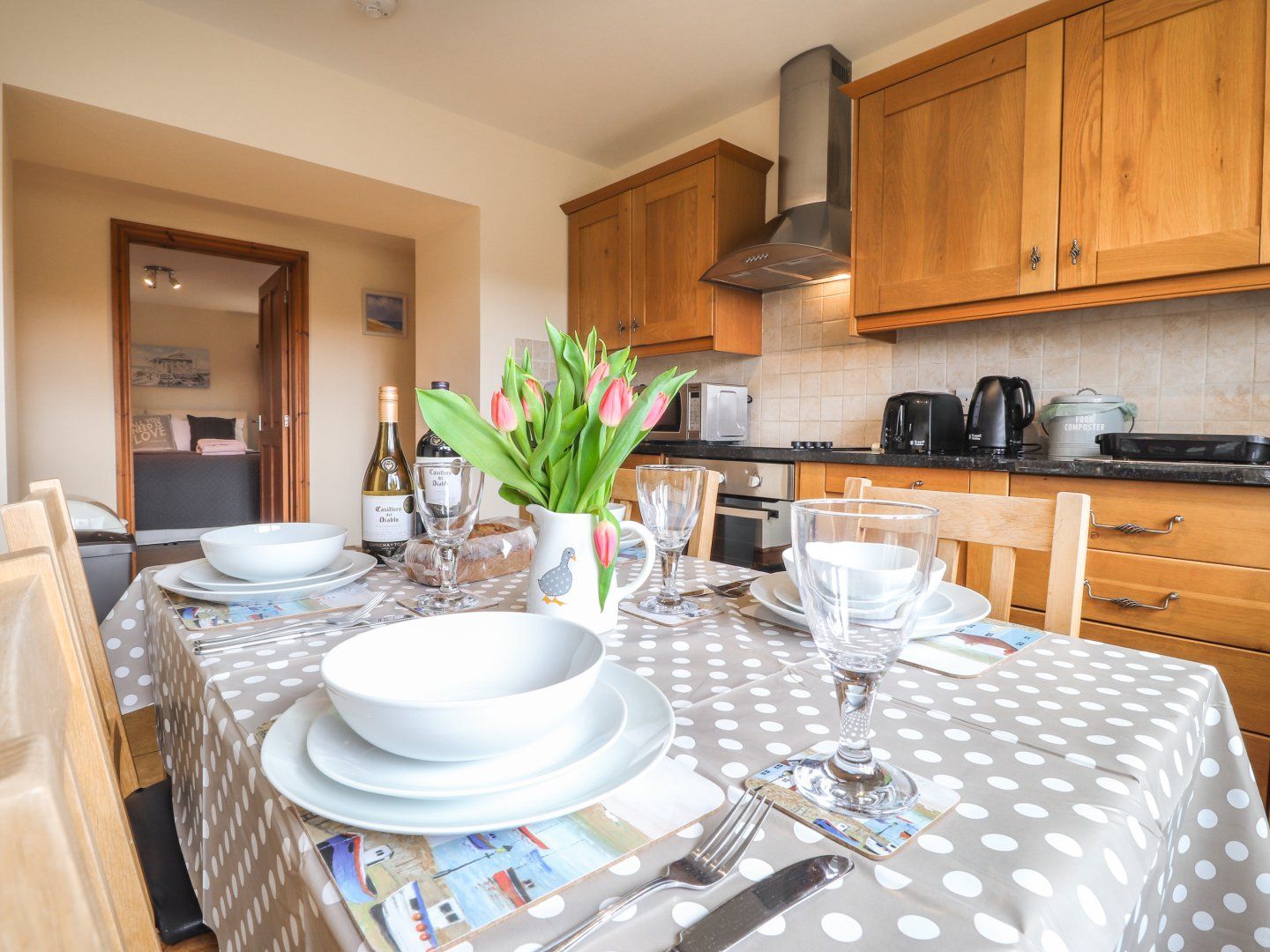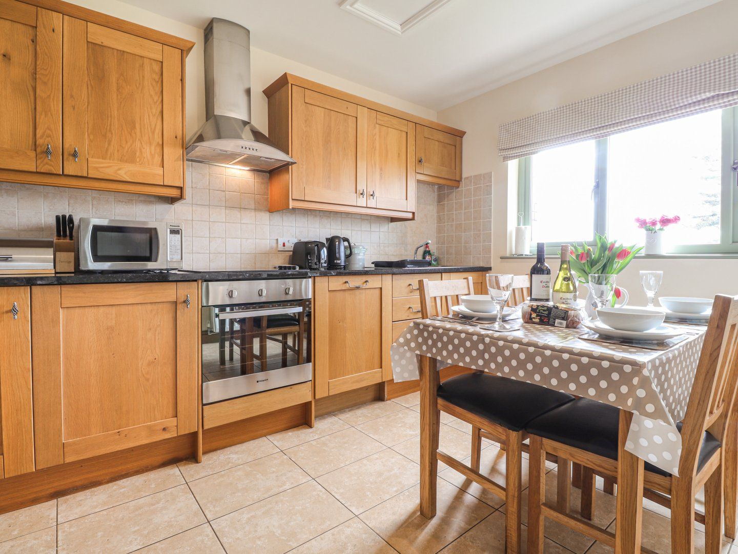 Amenities Oil central heating. Electric oven and hob, microwave, fridge with freezer compartment, dishwasher, shared washing machine/dryer, Smart TV, CD and WiFi. Hot tub (bath robes for the hot tub are charged at £10 per booking, these will be automatically added to your booking). Fuel and power inc. in rent. Electric Vehicles: This property does not have a charge point for electric vehicles and charging from within the property is prohibited. Bed linen and towels inc. in rent. Please bring your own beach towels and cot linen. Cot, highchair and stairgate available on request. Off-road parking for two cars. Private patio to fore of cottage with picnic bench and barbecue and shared open plan lawned areas. There is a communal fire pit area with superb views of the countryside allowing guests to enjoy a cosy evening under the stars. One well-behaved dog welcome (£25 supplement) and a secure dog walking area is provided. Pets must be house trained and must be kept on a lead when out of the cottage. No smoking allowed. Shop 3.9 miles.