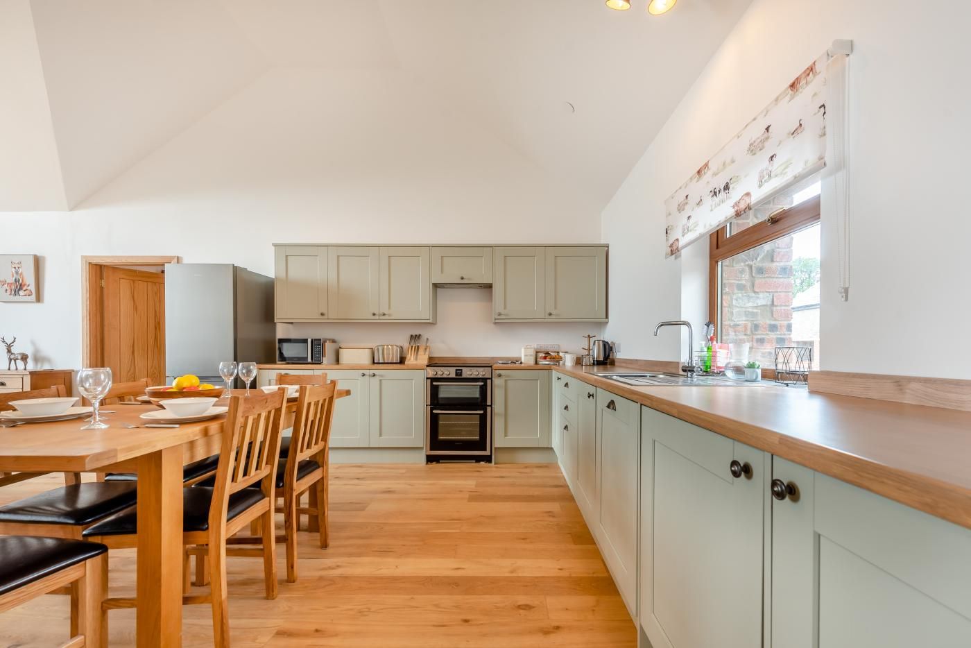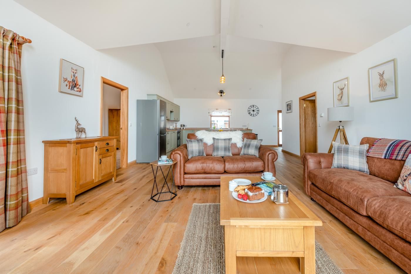 Roam the farm and surrounding countryside as a couple or small family and enjoy far-reaching countryside views from the sociable open-plan living space at this warm and welcoming home.
