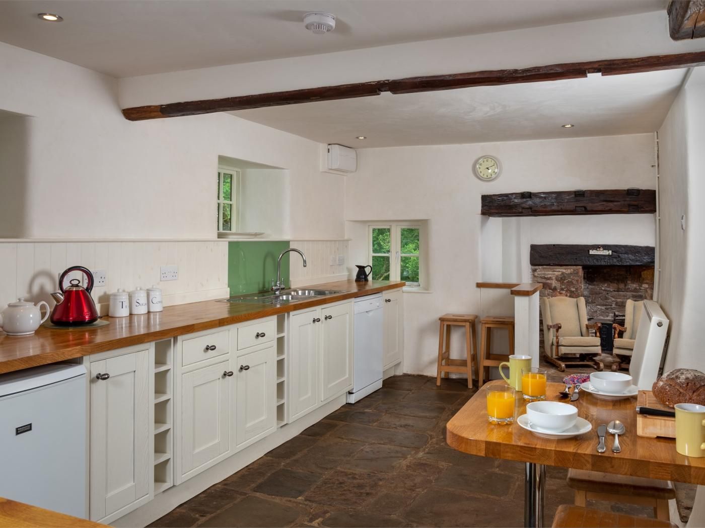 This 17th-century Welsh longhouse is set to the west of Brecon Beacons National Park, along an ancient drover’s road.