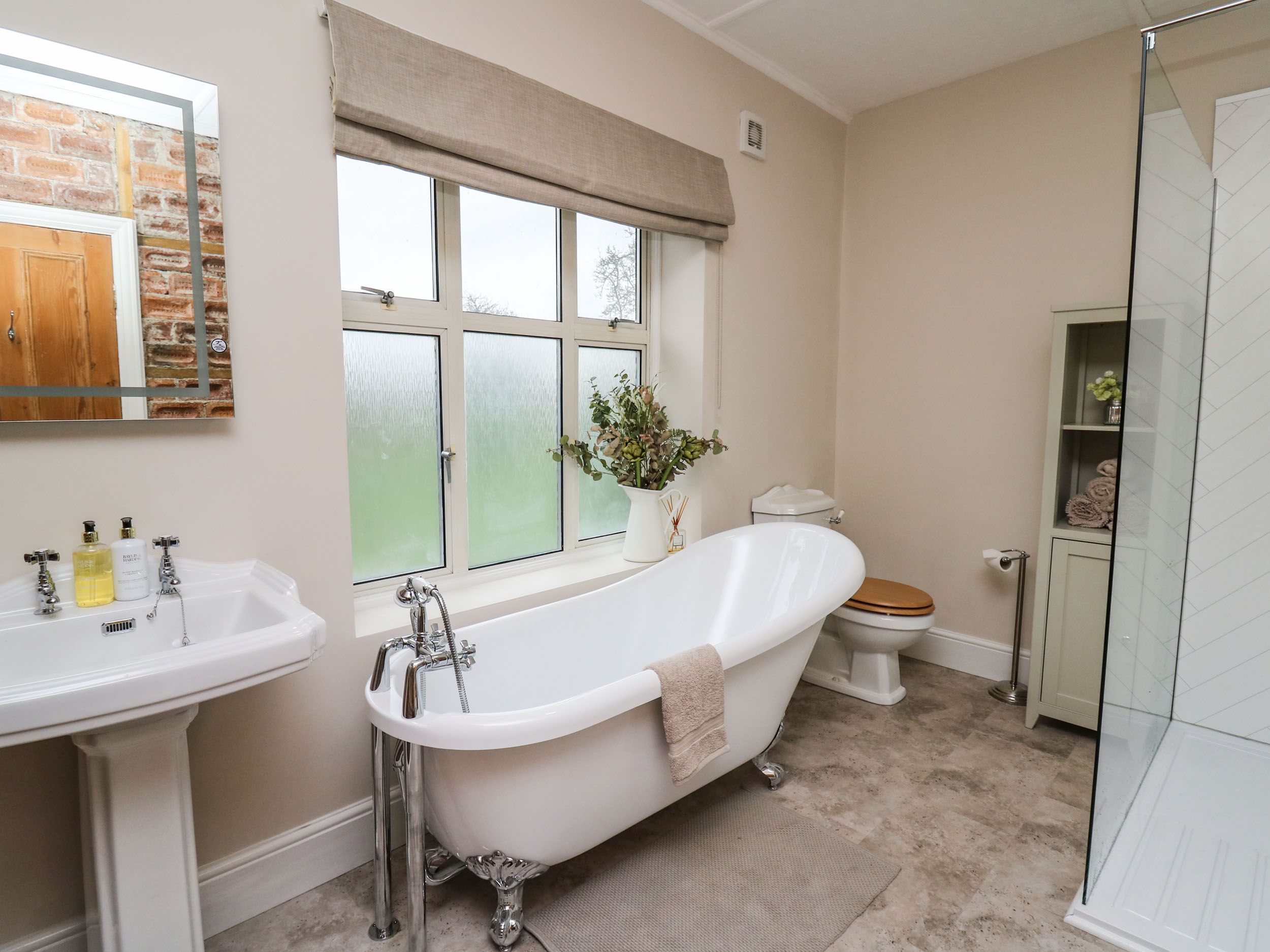 Amenities Oil central heating. Range cooker, kettle, toaster, microwave, large fridge/freezer, washing machine and dishwasher. Cafetière and Bosch Tassimo coffee machine.Fire pit and BBQ. WiFi. Travel cot and high chair. Bed linen and towels inc. in rent. Off-road parking for 5 cars. Two well-behaved pets welcome. Enclosed, wrap-around garden with hot tub. Sorry, no smoking. Shop 0.3 miles and pub 1.6 miles. Please note: there is an on-site cat on the premises. Note: Fishing is available on the Owner's land, though access is via a designated railway crossing point where safety measures and guidelines must be followed. Please Note: No Stag/Hen or similar parties.