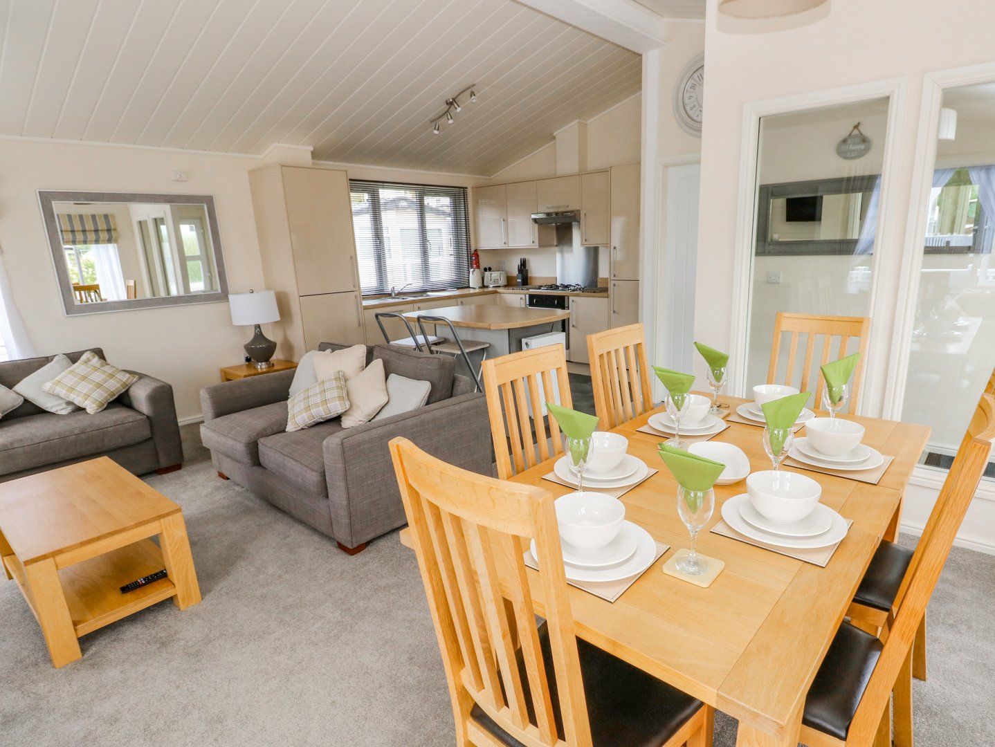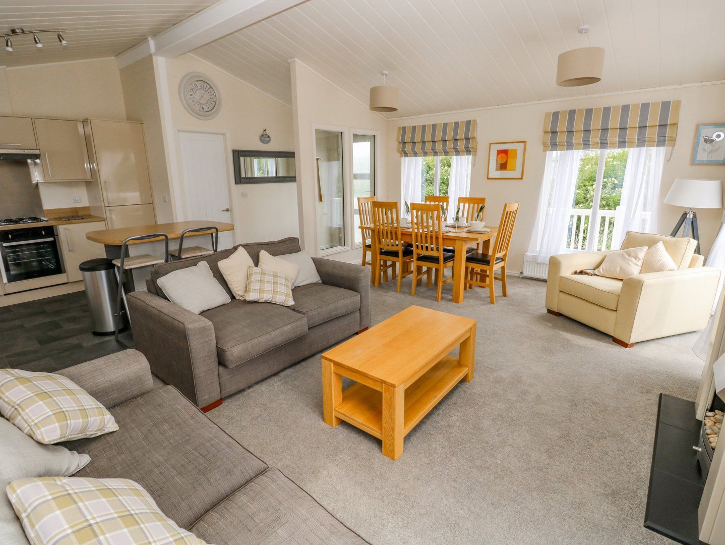 Accomodation Details Single-storey. Three bedrooms: 1 x double with en-suite walk-in shower, basin and WC, 2 x twin. Bathroom with bath, shower over, basin and WC. Open-plan living space with kitchen, dining and sitting area