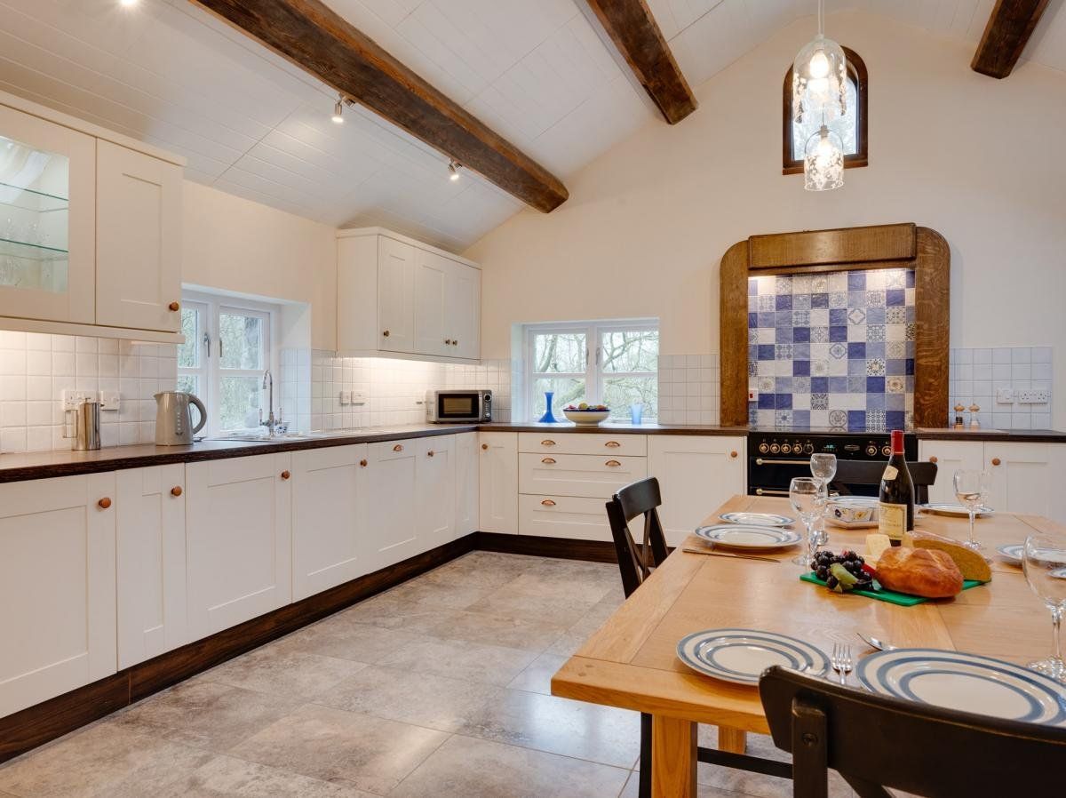 The home-from-home boasts an inviting natural stone facade with beautifully painted timber frames and a double-height living area, creating an ideal retreat for a couple or small family to enjoy the breathtaking Welsh landscape.