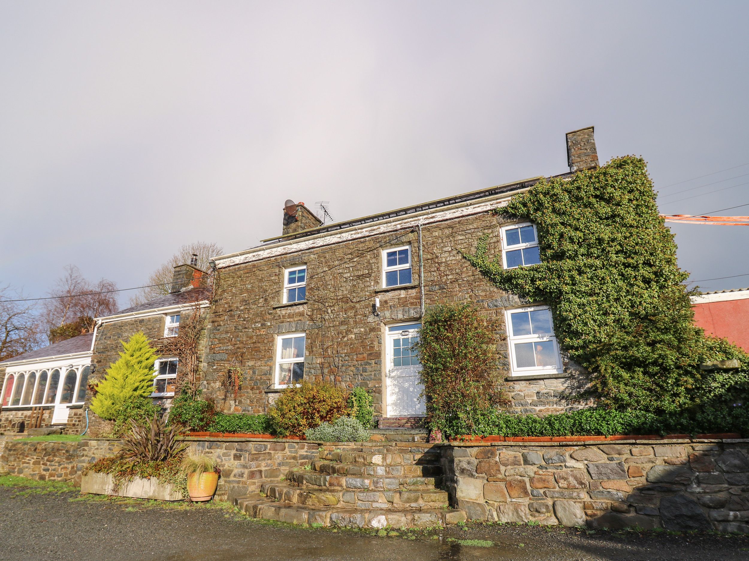 Holiday home The Farmhouse is a spacious detached character property on an organic farm three miles from Aberaeron. The property has six bedrooms, two on the ground floor and one with an en-suite, offering a variety of sleeping arrangements. There is a family bathroom and an additional cloakroom, along with a kitchen, sitting room with woodburner and large conservatory with dining area and comfy seating as well as a second woodburner. Outside is off road parking for four cars, a private patio with furniture and BBQ, small lawn and shared grounds including a large grassed area, play area, games barn and fishing lakes. The Farmhouse makes a wonderful base for a group to enjoy the coast and countryside of this part of Wales.