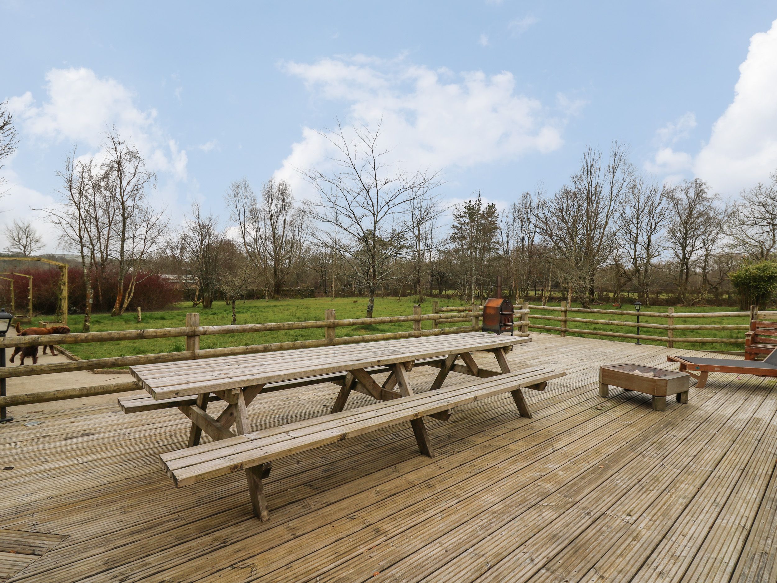 Amenities Oil central heating and woodburning stove. Gas range cooker with oven and hob, electric oven, microwave, fridge/freezer, washing machine, tumble dryer, dishwasher, 5 x TVs, WiFi. Games room with pool table. Fuel and power inc. in rent. Bed linen and towels inc. in rent. Ample off-road parking. Enclosed gardens with lawn, seating, and pond. Wrap-around decking with furniture, patio seating and summer house. Private Swim Spa and Hot tub. Shared park and accessible tree house. Two well-behaved dogs welcome. Sorry, no smoking. Shop 1.9 miles, pub 1.8 miles. Note: Cottage is wheelchair-friendly. Note: Children (including those in wheelchairs) have shared use of purpose-built ramped tree house by prior arrangement with owner. Note: Owners have free-roaming ducks, chickens, dogs and cats, and can offer stabling and use of ménage by prior arrangement. Note: Two open fishing lakes on owners land for fun fishing
