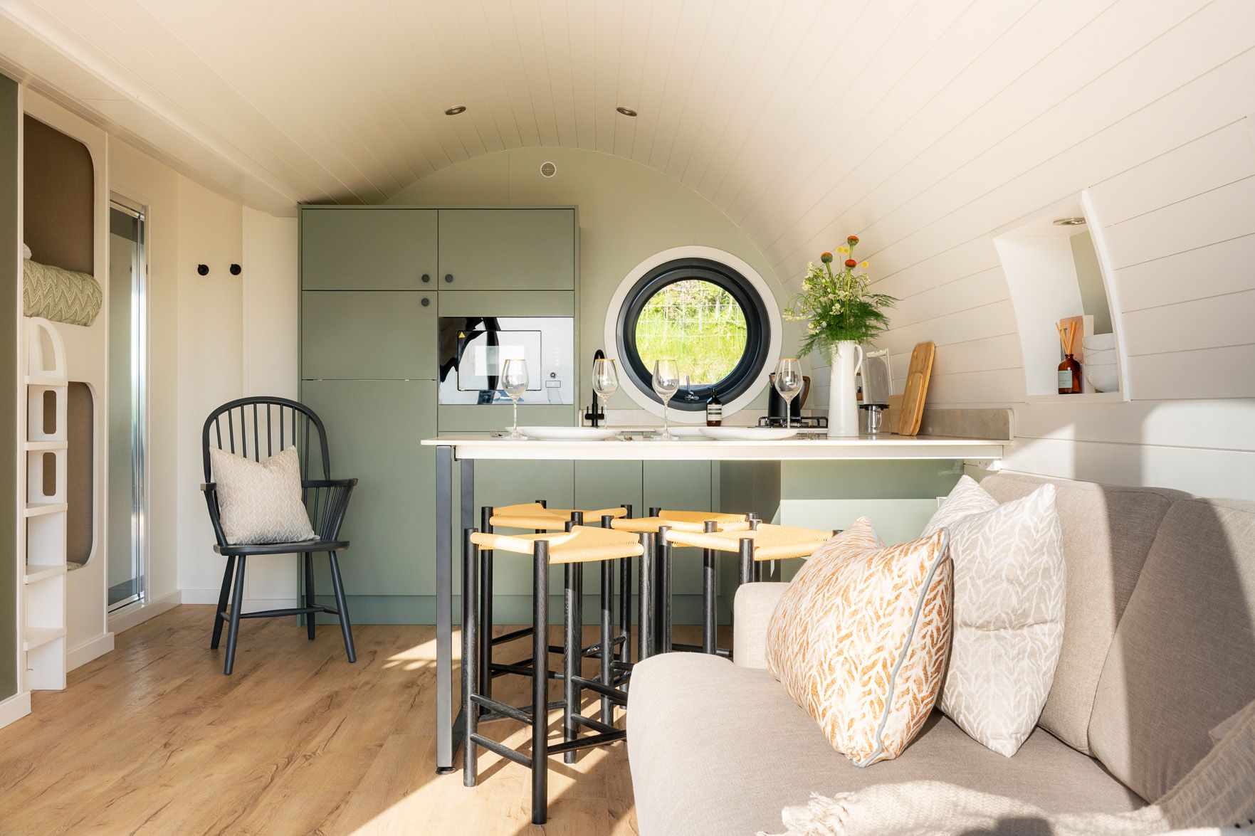Accomodation Details Sykes Gem Awards 2024 Bronze winner for Best Newcomer. Single-storey. One double bedroom with Smart TV. Shower room with walk-in shower, basin and WC. Studio-style layout with bunk bed, kitchen, dining area and sitting area
