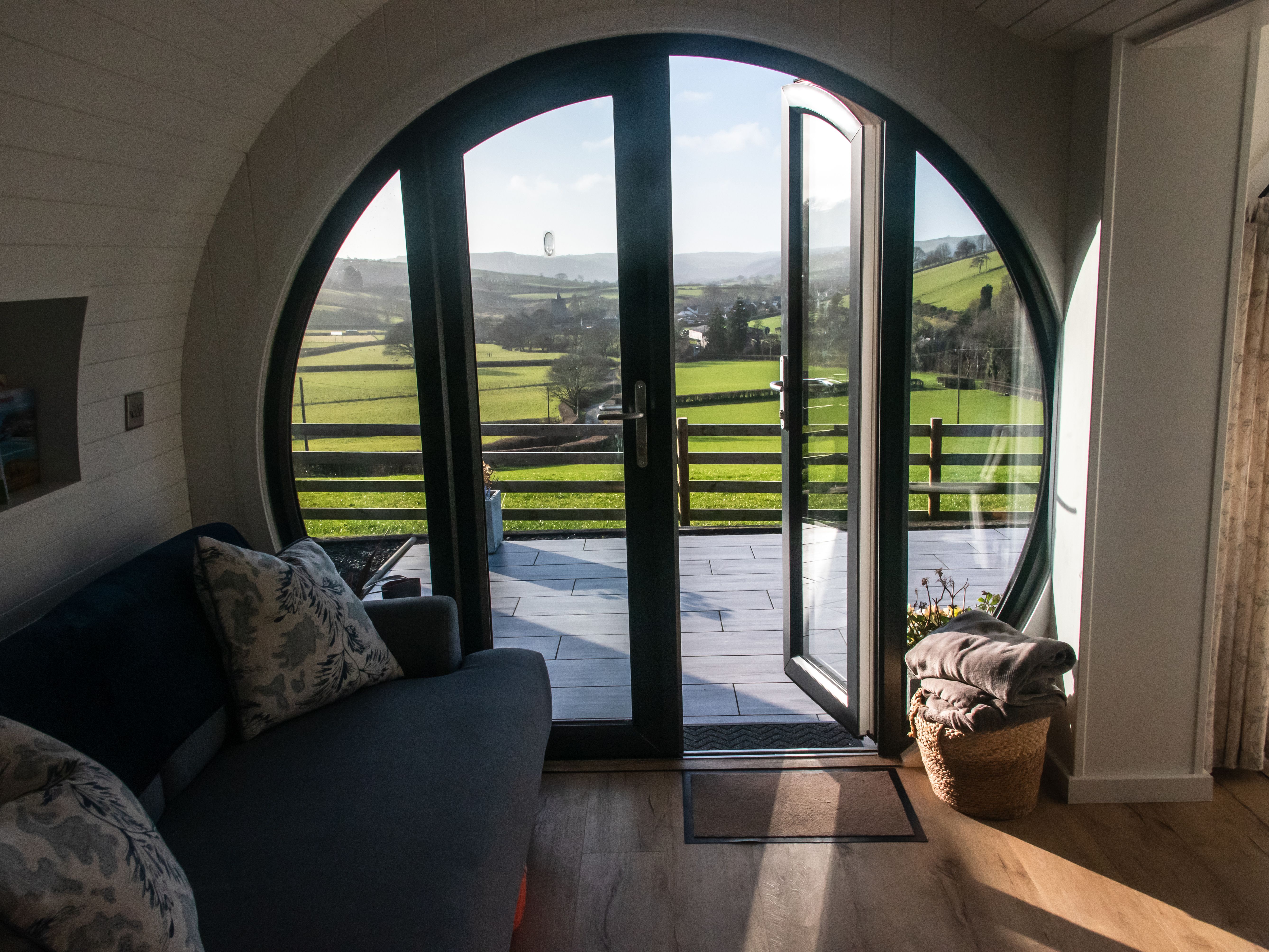 Amenities Electric central heating. Microwave oven, gas hob, fridge with ice-box, coffee machine with capsules. 2 x Smart TVs and WiFI. Fuel and power inc. in rent. Bed linen and towels inc. in rent. Welcome pack with local produce provided and celebration packs and graze boards and boxes available to order via the owner. Off-road parking a short walk from pod. Enclosed garden with patio, hot tub, fire pit, barbecue and furniture. Sorry, no smoking. Shop 5.6 miles and pub 0.1 miles. Note: There is no door separating the bedroom from the living space. Note: There is a step up into the pod, please take care. Note: Robes for the hot tub are provided. Note: Graze boards/boxes available to order. Note: property only accepts children over 3 years. Note: property is a pumpkin farm through the autumn, and offers a pick your own pumpkin event. Note: This property can be booked with Ref 1129772, together sleeping up to eight guests.
