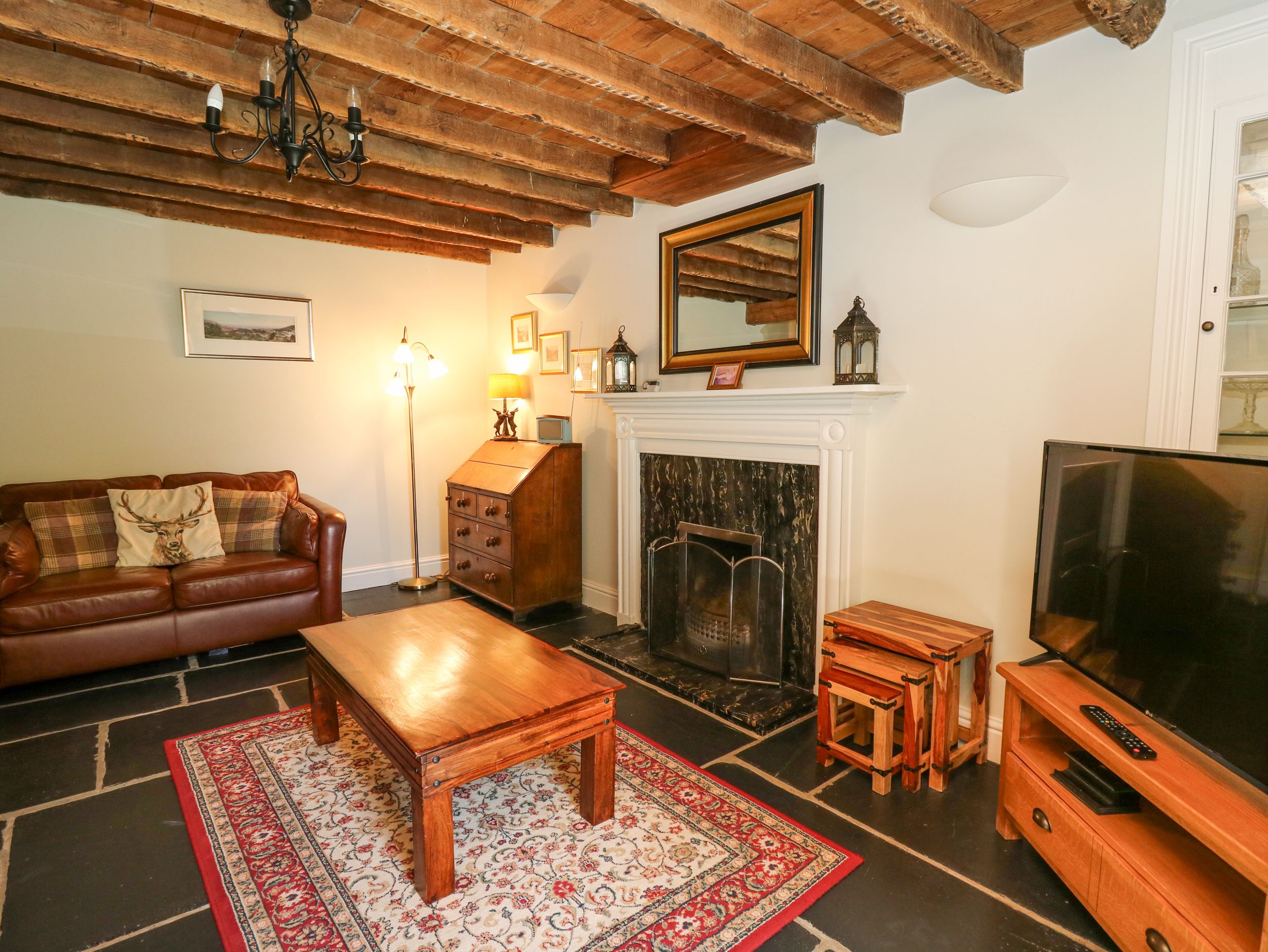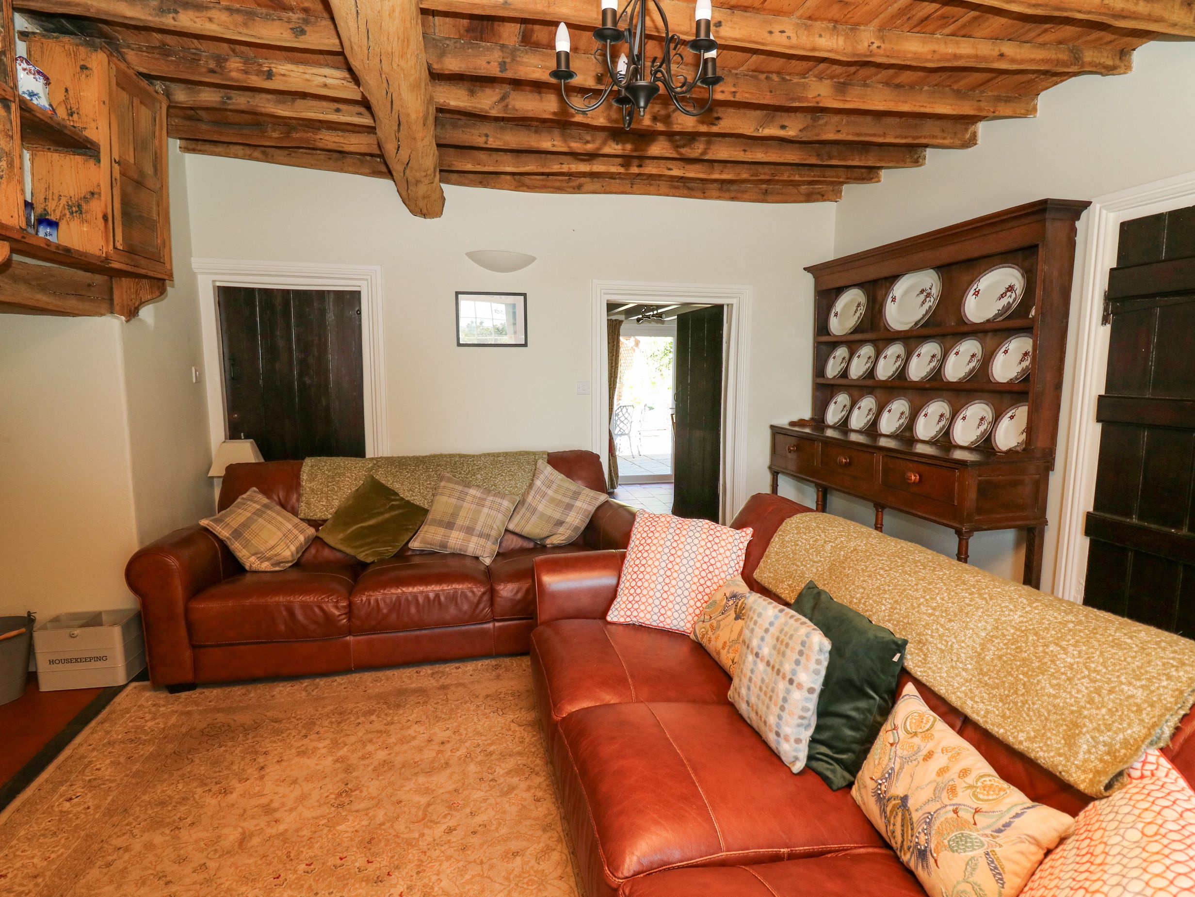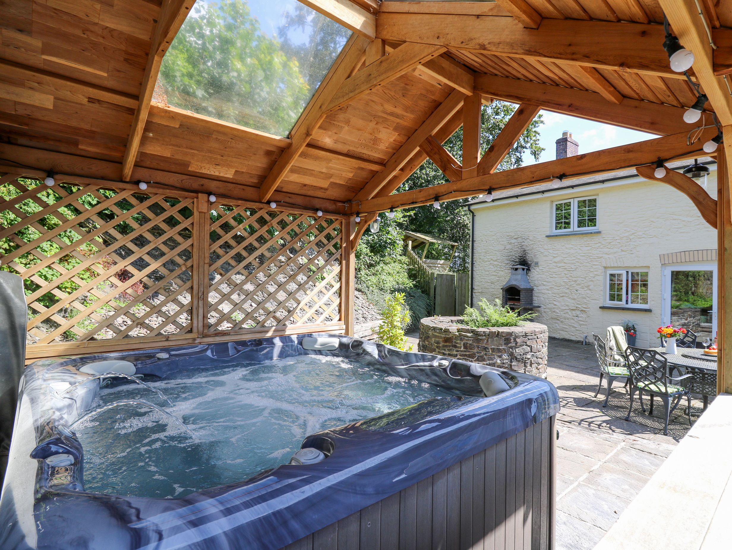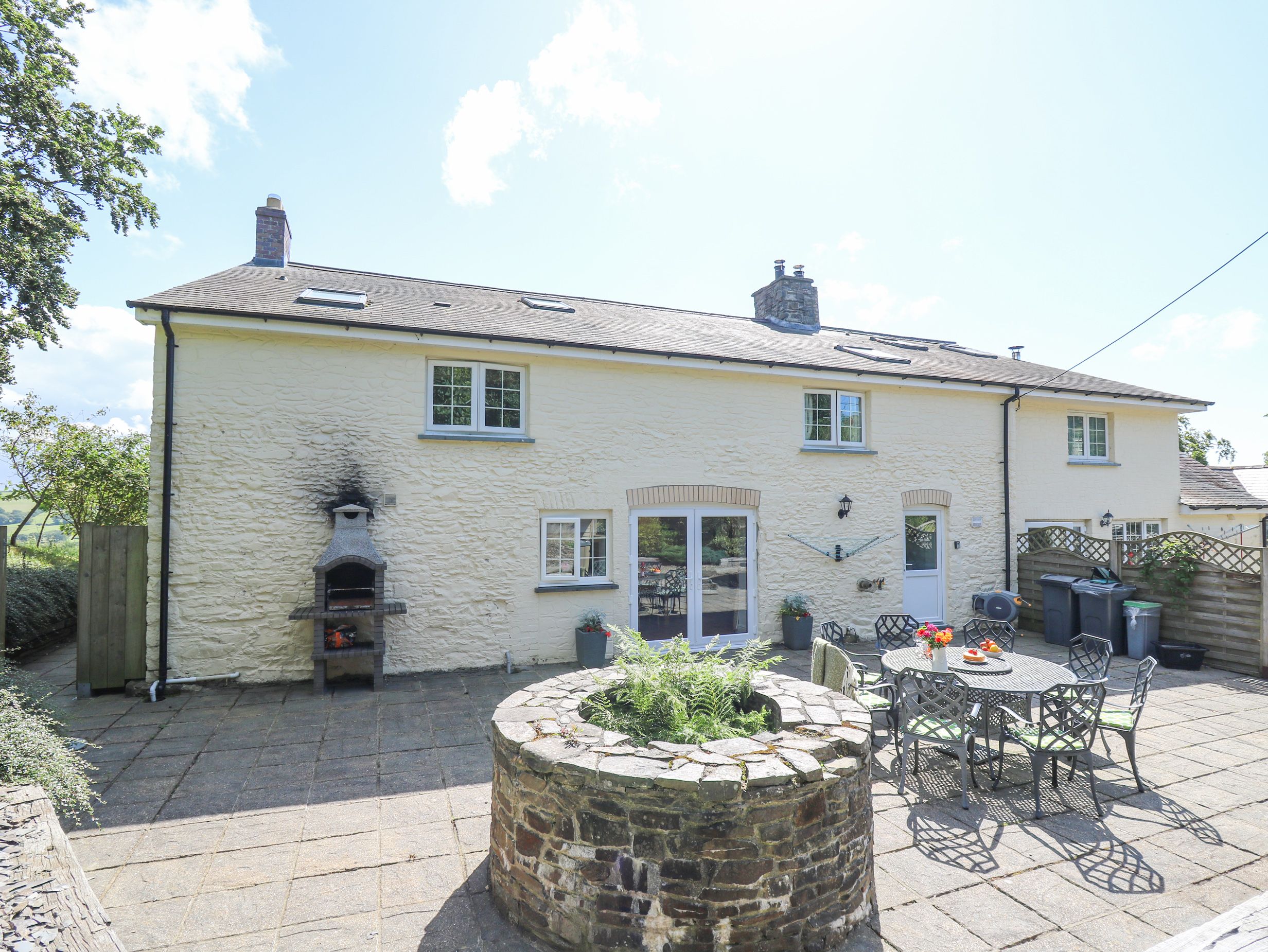 Amenities Biomass central heating with woodburner and open fire. Electric range oven and 5-ring gas hob, microwave, fridges, freezer, washing machine, tumble dryer, dishwasher, 4 x TVs with Freeview, DVD, WiFi. Fuel, power and starter pack for fires inc. in rent. Bed linen and towels inc. in rent. Off road parking for 3 cars. Enclosed lawned garden with patio, hot tub and furniture. Two well-behaved dogs welcome. Sorry, no smoking. Shop 3 miles, pub 1.5 miles. Note: En-suite shower to the two double bedrooms accessed by 3 steps. Note: Limited WiFi availability. Note: Covered well in garden, children to be supervised at all times. Note: Check-in time 4pm. Please be advised: this property can only accept weekly bookings starting on a Friday and short break bookings starting on a Monday, Wednesday or Friday.