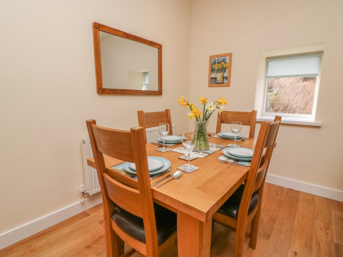 Amenities Oil central heating and woodburning stove (Starter pack provided October-March_. Electric oven and hob, microwave, fridge/freezer, dishwasher, Smart TV and WiFi. Fuel and power inc. in rent. Bed linen and towels inc. in rent. Cot and High chair on request. Off-road parking for two cars. Gravelled garden and veranda with furniture. Sheltered hot tub. Two, well behaved pets welcome-£25 supplement per week. Sorry no smoking. Shop 0.6 miles, pub 0.9 miles