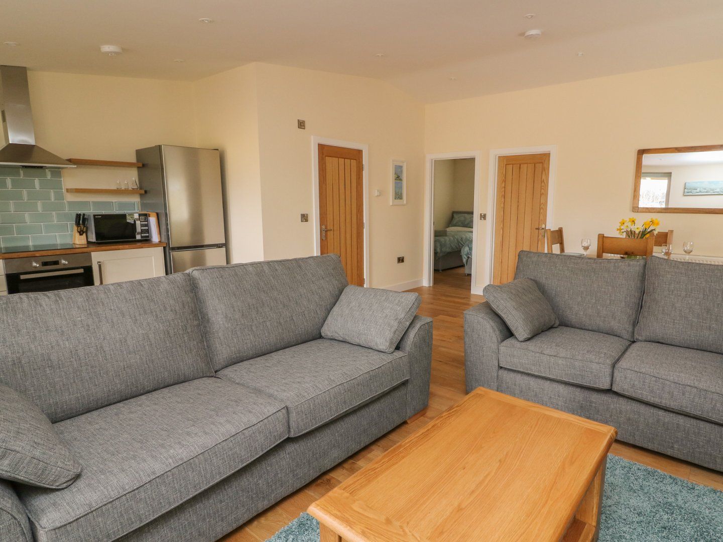 Accomodation Details All-ground-floor. Two bedrooms: 1 x king-size with TV, 1 x twin (zip/link, can be super-king-size on request). Shower room with walk-in shower, basin and WC. Open-plan living space with kitchen, dining area and sitting area with woodburning stove
