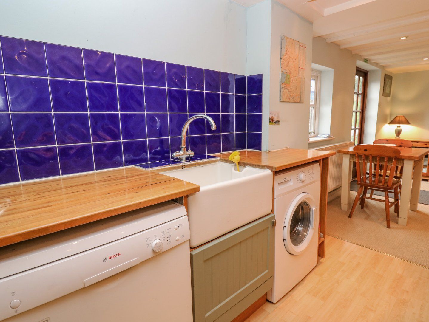 Amenities Gas central heating. Electric oven and hob, microwave, fridge, freezer, washing machine, dishwasher. TV, WiFi. Fuel and power inc. in rent. Bed linen and towels inc. in rent. Off-road parking for 3 cars on shared drive. Enclosed rear garden with patio and furniture with shared access. Two well-behaved dog’s welcome. Sorry, no smoking. Shop 1.5 miles, pub 1.5 miles, beach 1.2 miles. Note: The property is situated next to the owner’s home. Note: There are steps down to the property