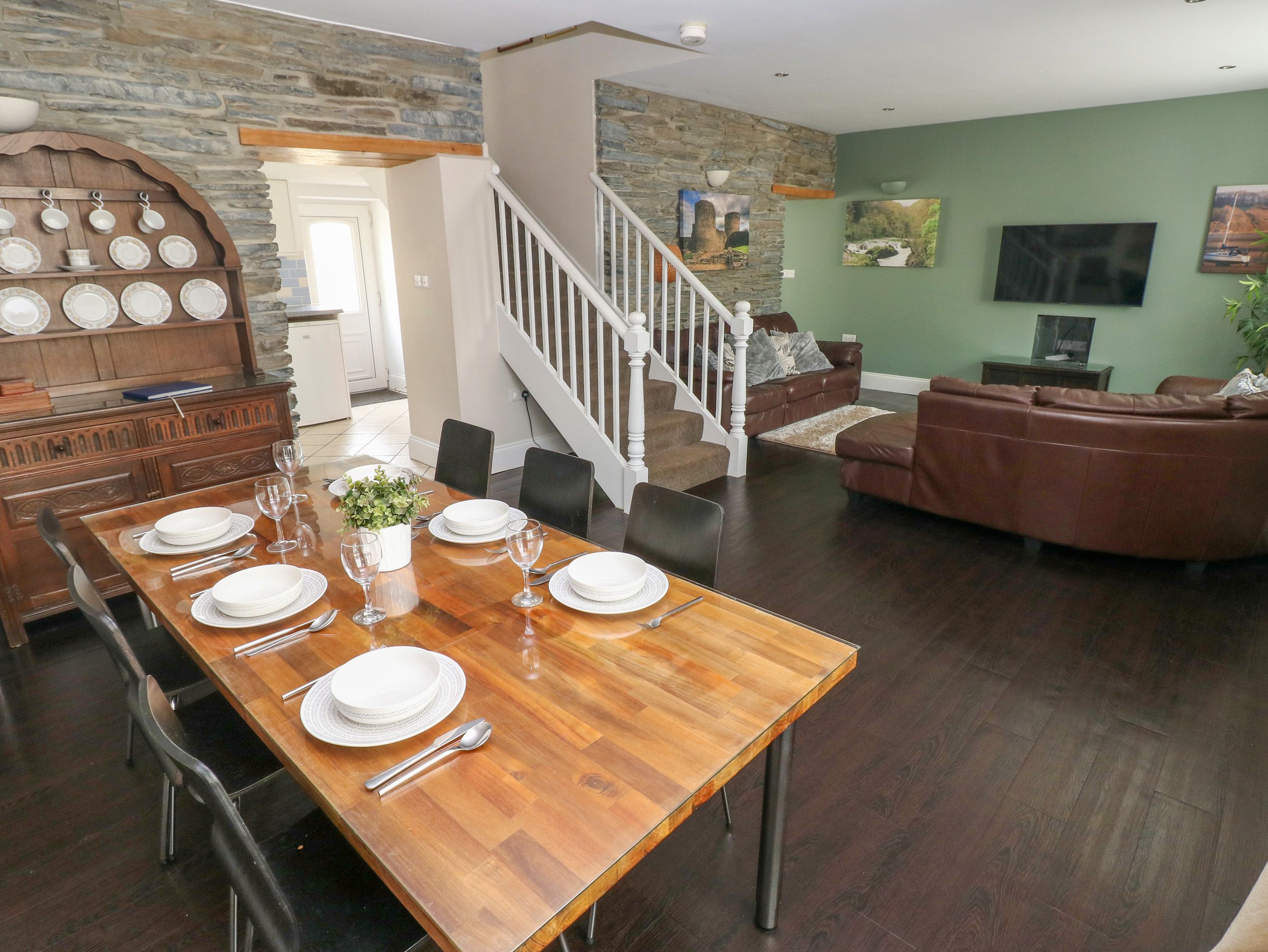 Amenities Calor Gas central heating. Electric oven and gas hob, microwave, fridge/freezer, washing machine, tumble dryer. TV, DVD player, WiFi included. Fuel and power inc. in rent. Bed linen and towels inc. in rent. 2 x highchairs and travel cot available. Off-road parking available for 3 cars. Enclosed rear garden with lawn, patio, barbecue and hot tub. Two well-behaved dogs welcome. Sorry, no smoking. Shop and pub 0.4 miles. Note: For guest's staying 3 nights or less there is a £30 hot tub supplement, for these stays spa robes and disposable slippers will be provided.