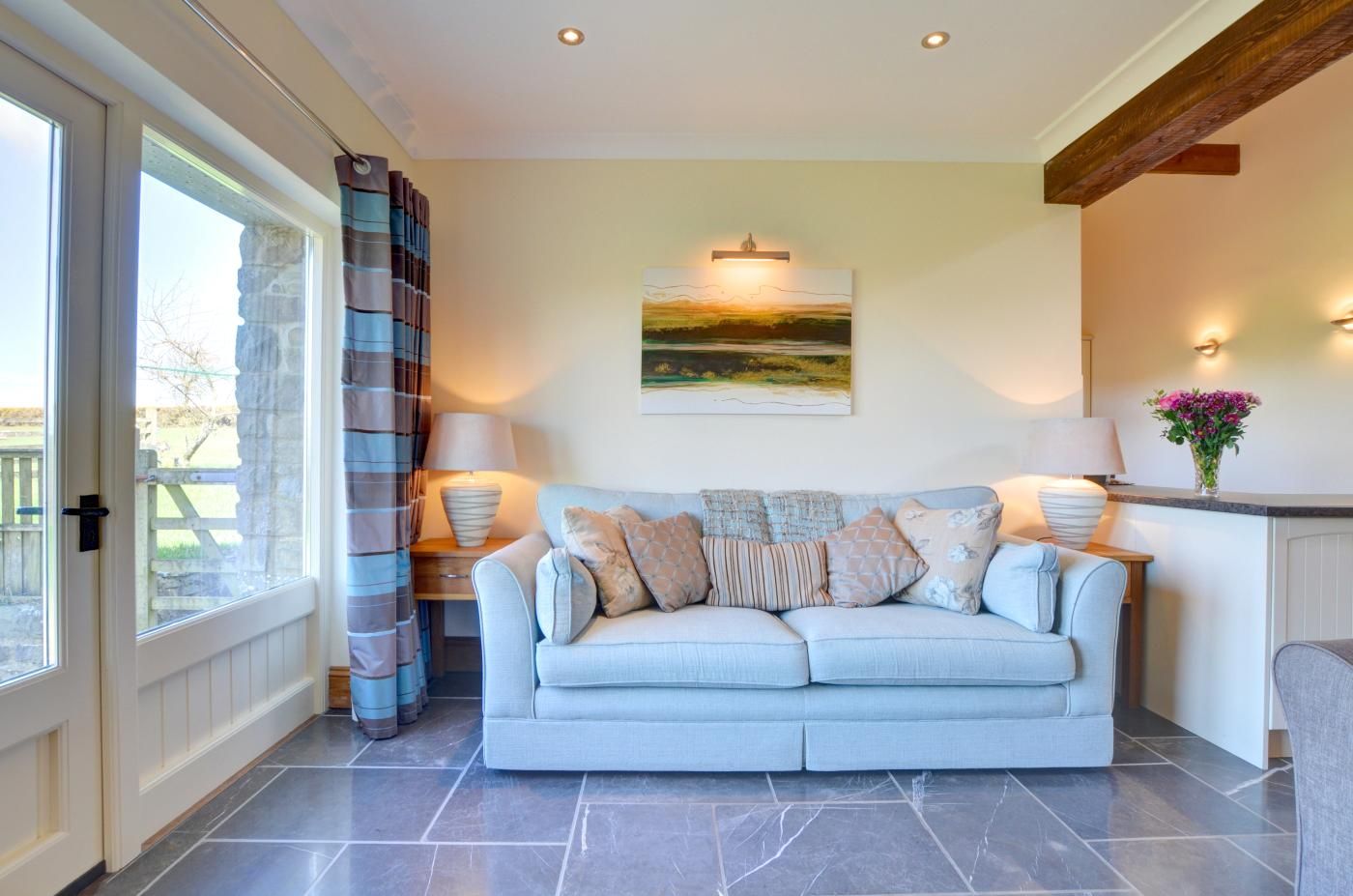After a long day exploring your surroundings, admire far-reaching countryside views from the comfort of the open-plan living/kitchen/dining room that beckons you to relax on the comfy sofa beneath the high beamed ceiling, enjoy a family game night seated around the dining table beside the exposed brickwork or cook up a storm with the local produce you’ve collected in the contemporary kitchen. When you can’t resist the call of bedtime, you have two inviting and cosy bedrooms to retire to, which each feature a calming neutral colour palette of earthy tones that perfectly reflect the unspoilt countryside that surrounds you.