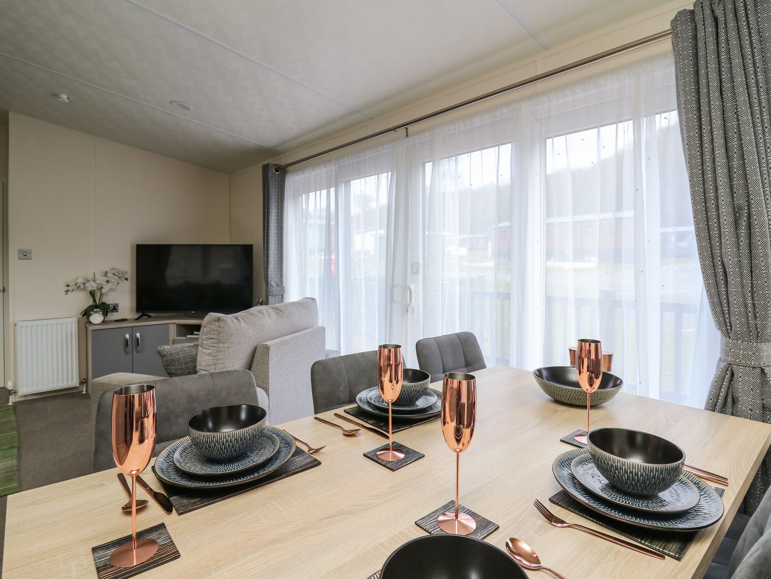 Amenities Gas central heating. Gas oven and hob, microwave, American Fridge freezer with water/ice dispenser, washer/dryer, dishwasher. Smart TV and WiFi. Fuel and power inc. in rent. Bed linen and towels inc. in rent. Off-road parking for 2 cars. Enclosed front veranda with south-facing decking and furniture. Two well-behaved dogs welcome. Sorry, no smoking. Shop, pub and beach 1 mile. Note: Due to the steps up to the lodge, this property may be unsuitable for those with limited mobility. Note: Check-in from 4pm and check-out by 10am