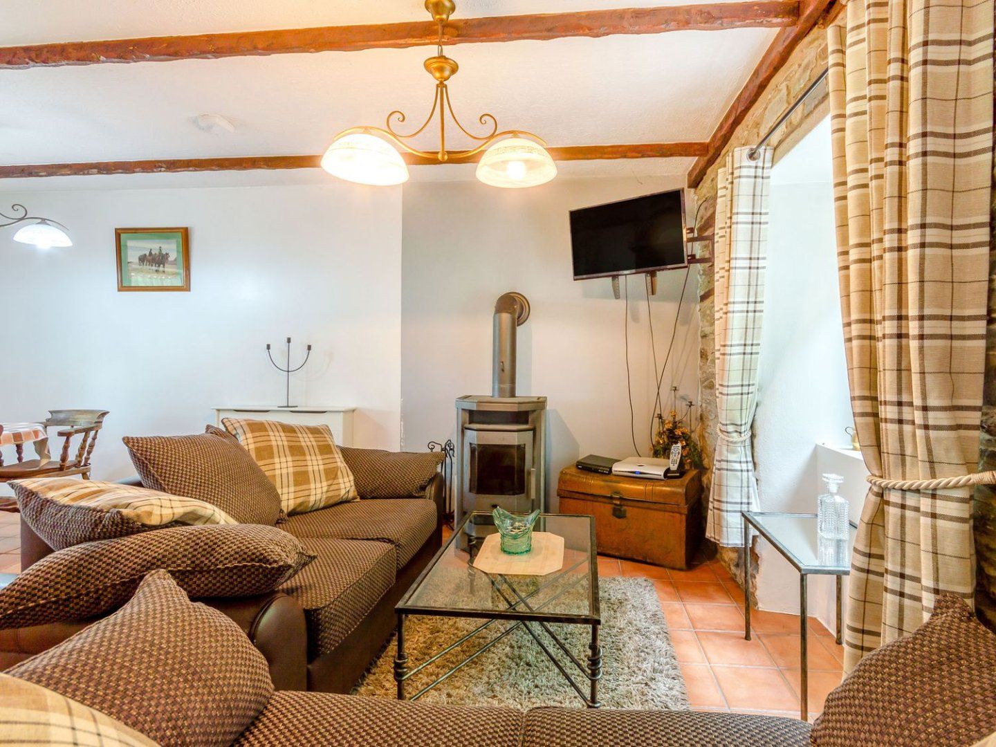 Amenities Electric storage heaters. Electric oven and hob, microwave, fridge, kettle, toaster. TV with Freeview, DVD player, WiFi. Fuel, power and starter pack for woodburning stove inc. in rent. Bed linen and towels inc. in rent. Off road parking for 1 car. Private garden with patio, furniture and BBQ. 1 well-behaved dog welcome. Sorry, no smoking. Shop 0.8 miles, pub 1 mile, river 1.3 miles. Note: Shower room is compact with a step up into the shower cubicle.Note: WiFi reception is limited. Note: This property has a pet supplement of £20 per pet per week