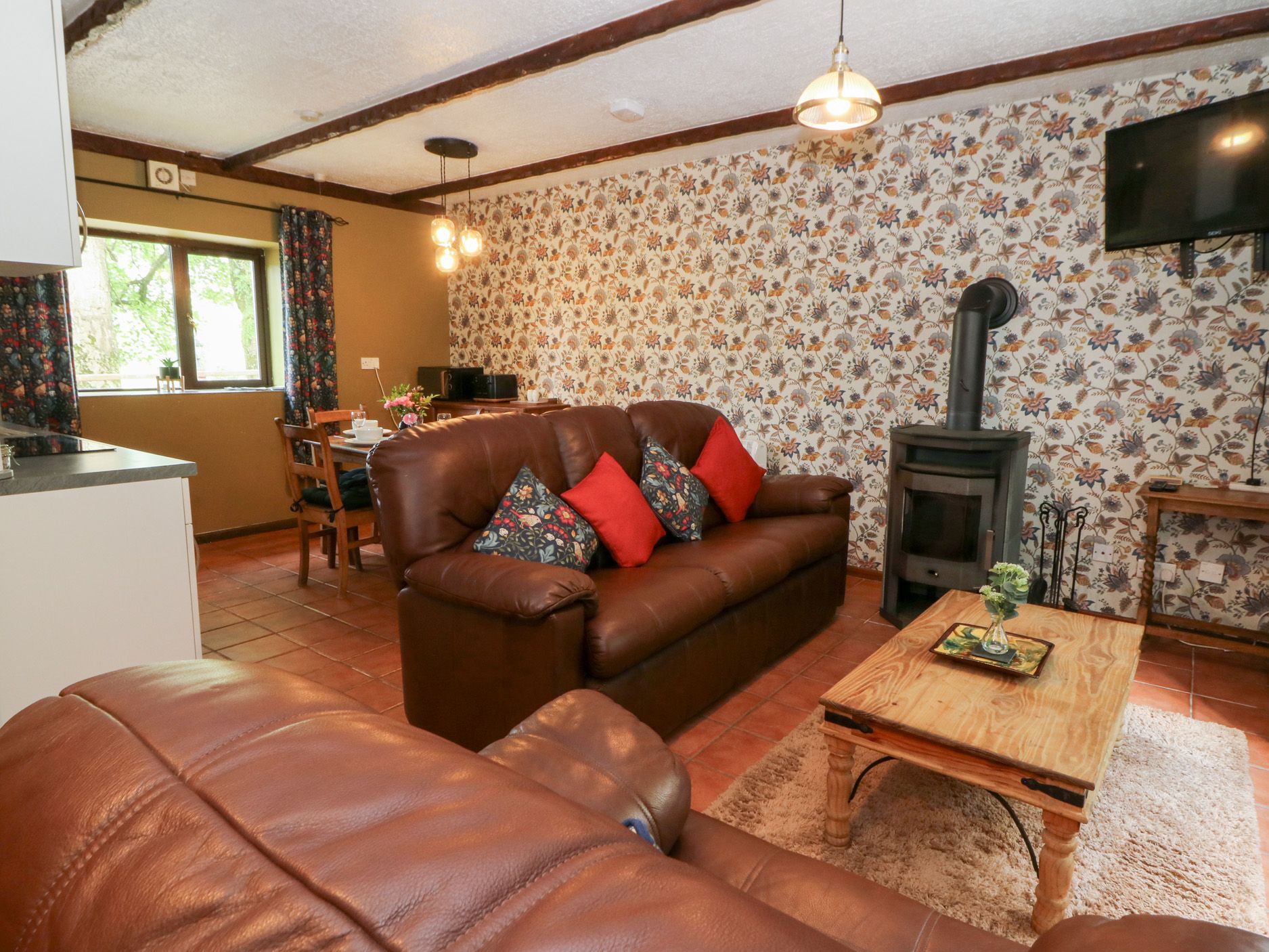 Accomodation Details Single-storey. Two bedrooms: 1 x double, 1 x twin. Shower room with walk-in shower, basin and WC. Open plan living space with kitchen, dining area and sitting area with woodburning stove