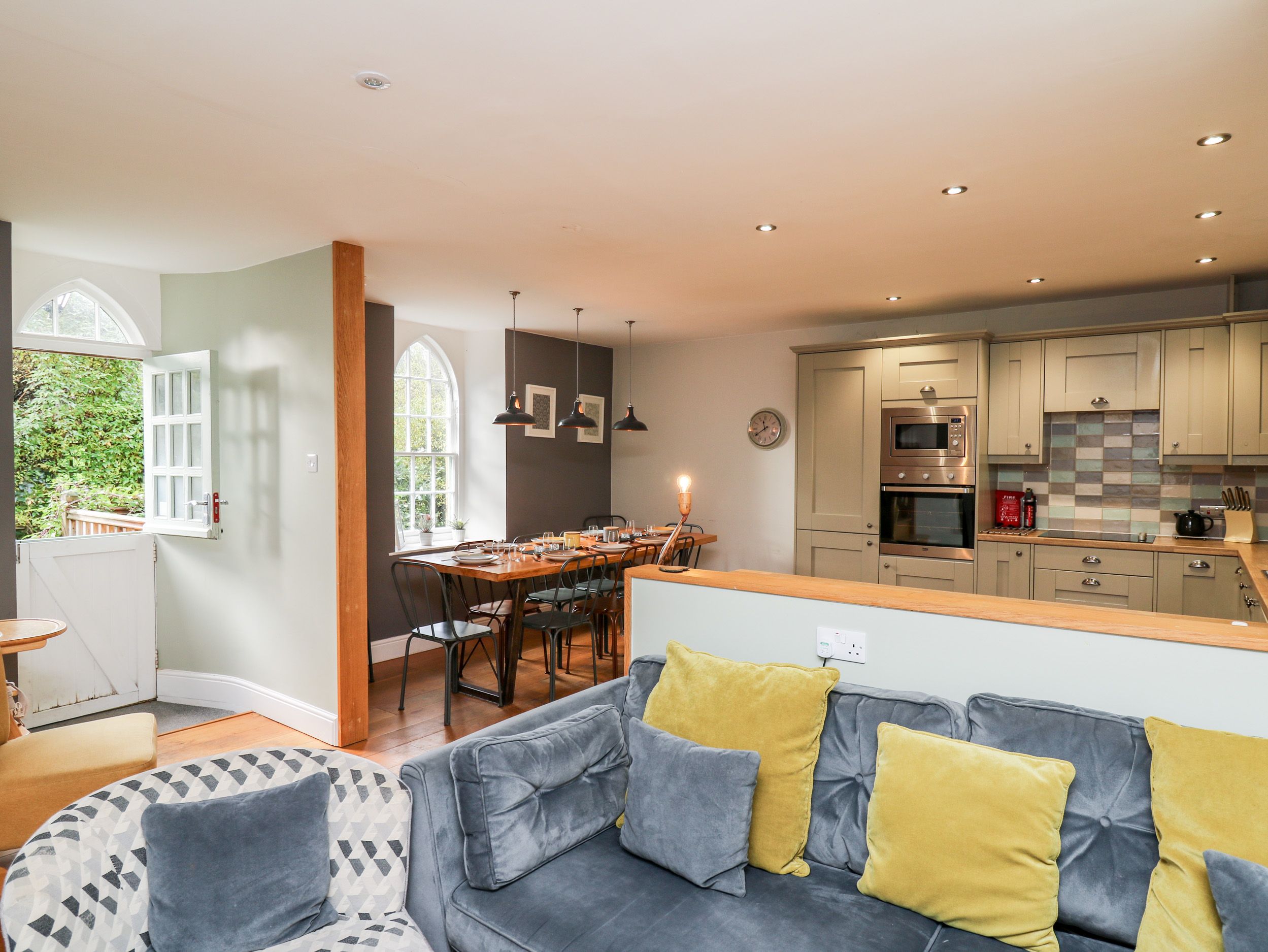 Accomodation Details Five bedrooms: 2 x double, 1 x ground-floor double, 1 x twin, 1 x single with trundle bed. Ground-floor bathroom with bath, walk-in shower, basin, and WC. Shower room with walk-in shower, basin, heated towel rail and WC. Open-plan living space with kitchen, dining and sitting area
