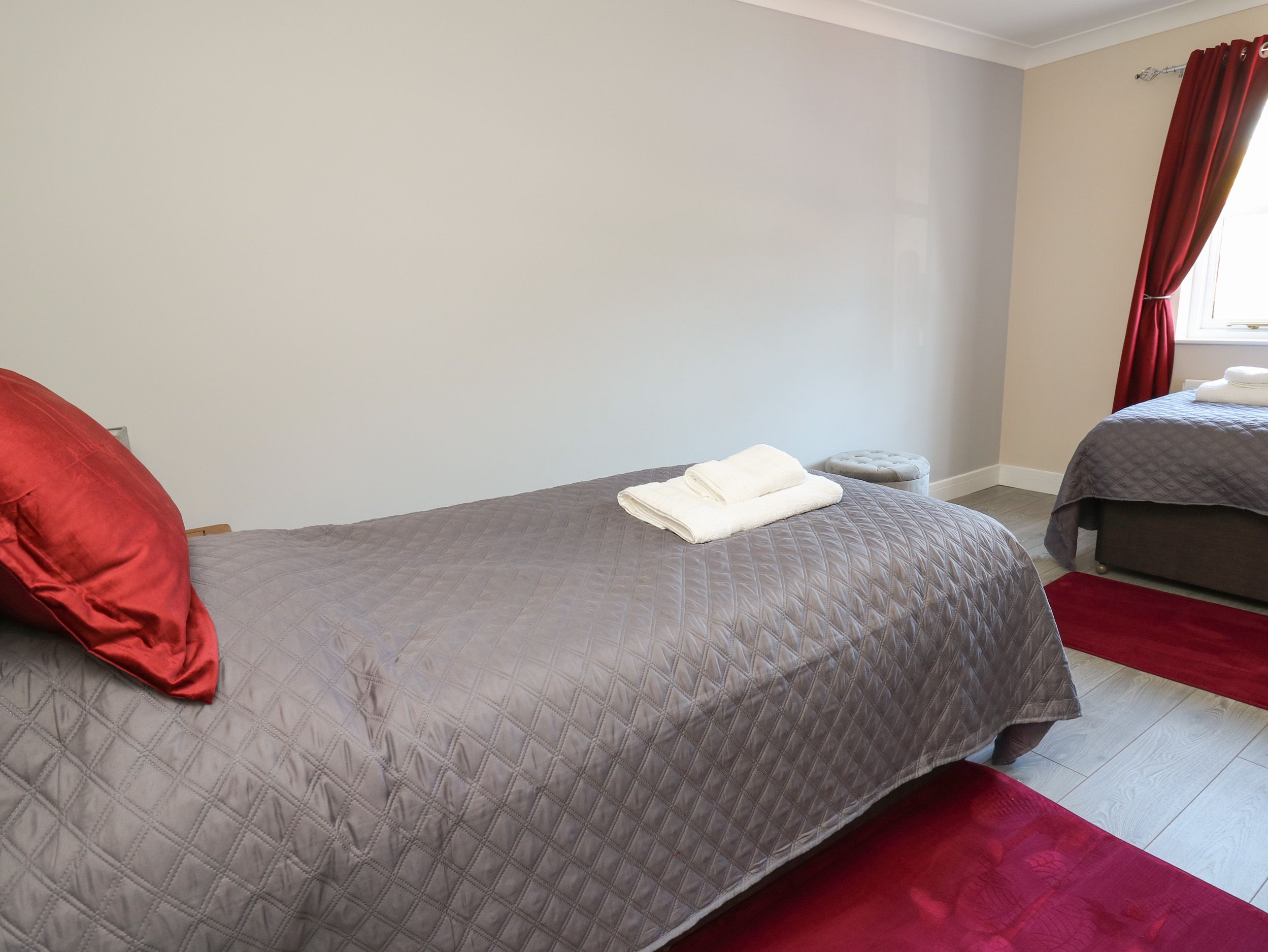 Single-storey. Two bedrooms: 1 x king-size (zip/link, can be twin on request), 1 x twin. Bathroom with bath, shower over, basin and WC. Kitchen/diner. Utility. Sitting room with woodburning stove