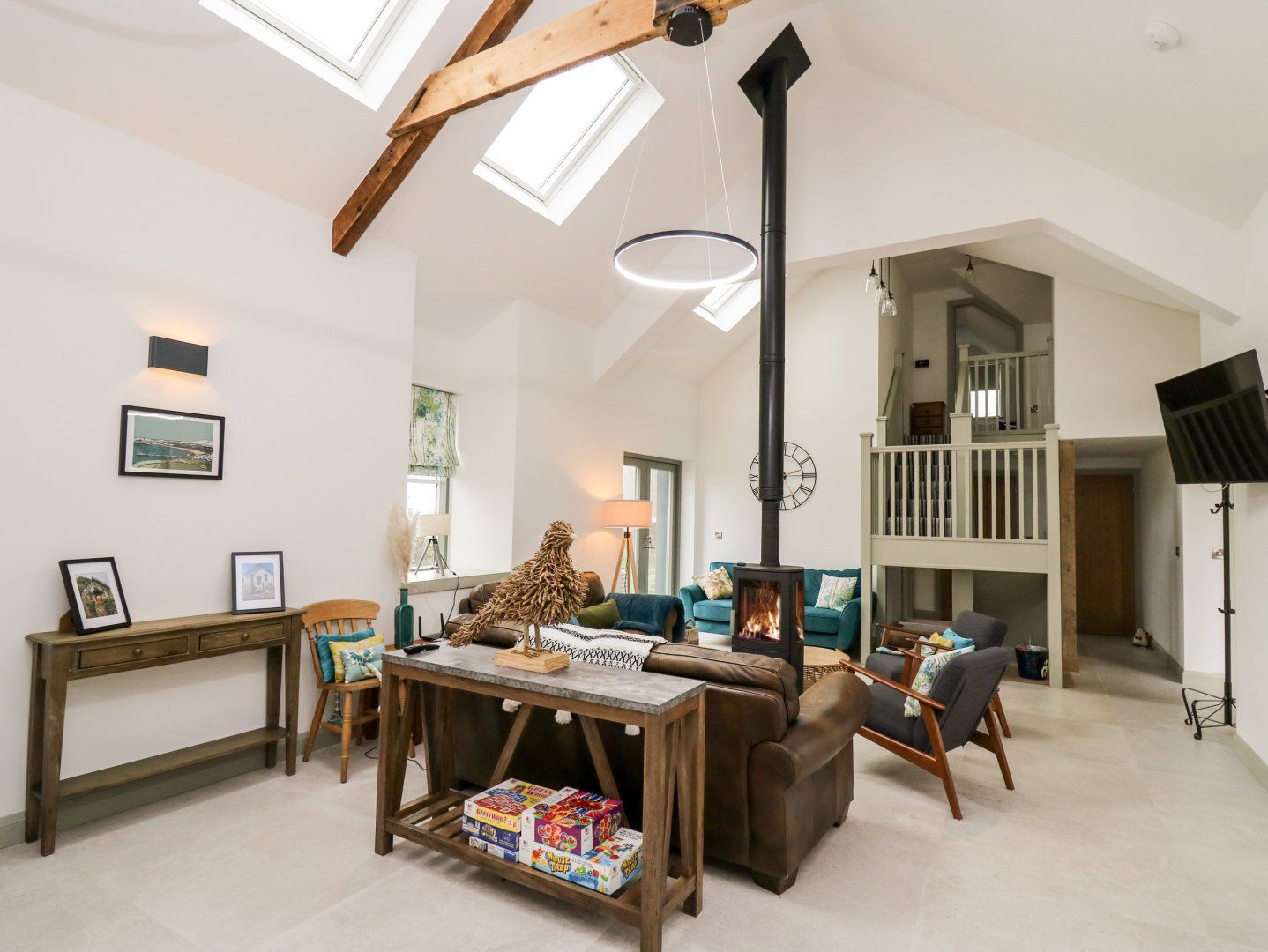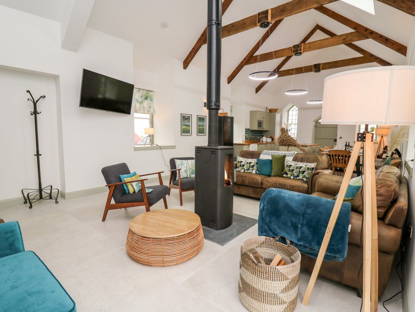 Accomodation Details Four bedrooms: 1 x ground-floor super-king-size with en-suite walk-in shower, basin and WC, 1 x ground-floor king-size, 2 x twin (zip/link, can be super-king-size on request). Ground-floor bathroom with bath, shower over, basin and WC. First-floor cloakroom with basin and WC. Open-plan living space with kitchen, dining and sitting area with woodburning stove. Utility cupboard