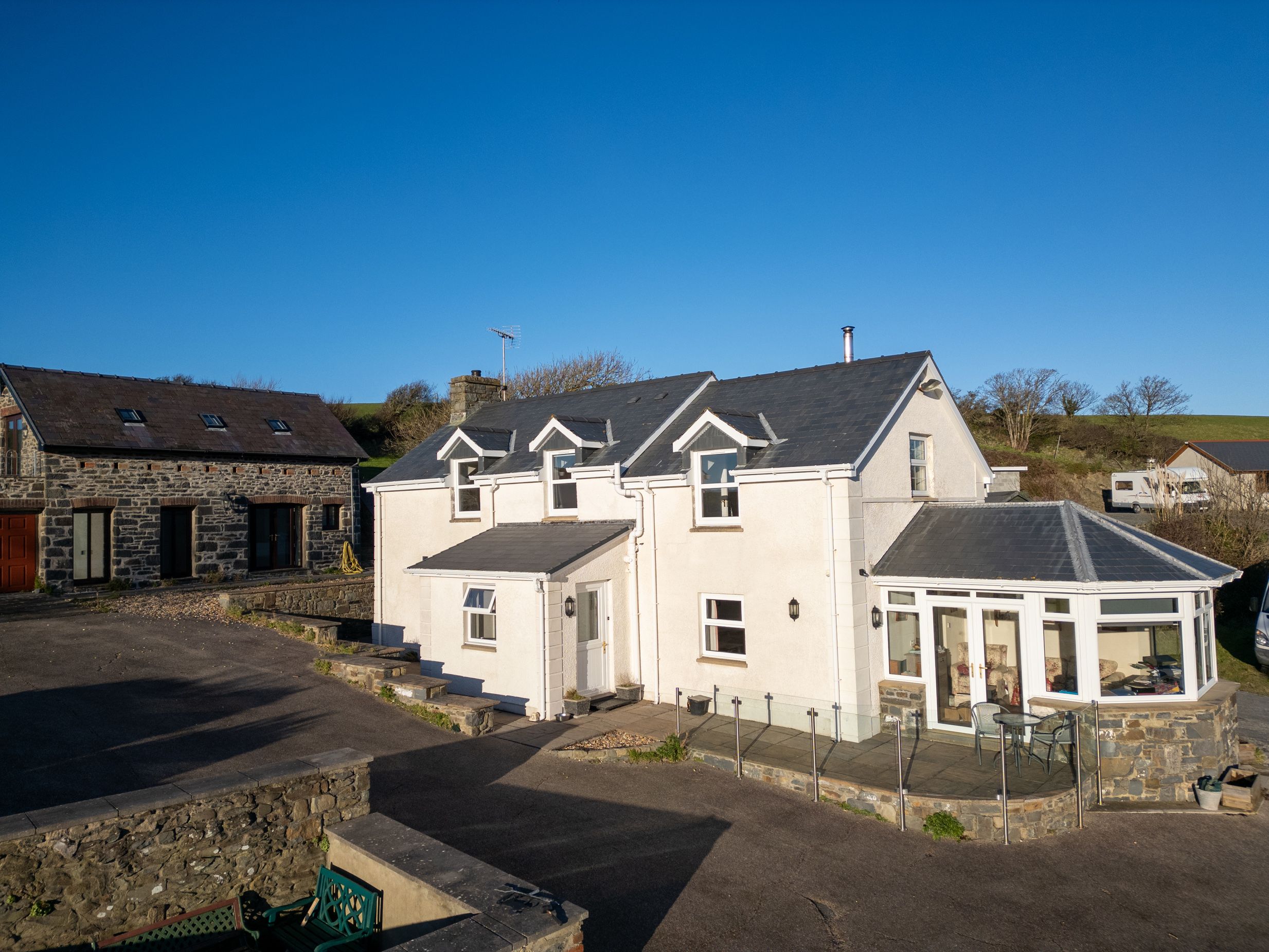 Holiday home Crogal Farmhouse has two bedrooms: 1 x super-king-size (zip/link, can be twin on request) 1 x double with en-suite basin, towel rail and WC. Bathroom with bath, walk in power shower, basin, WC. Kitchen/diner. Sitting room with woodburning stove (first basket of logs free). Oil central heating. Electric oven and hob, Rayburn, microwave, fridge/freezer, washing machine, dishwasher, kettle, wine rack. Smart TV. Fuel, power, and starter pack for woodburning stove inc in rent. Bed linen and towels inc in rent. Private driveway parking for 2 cars. Private front garden with lawn, patio, furniture and barbecue. Sorry, no pets and no smoking. Shop 0.9 miles, pub 0.5 miles, beach 1.1 miles. Note: The garden is not enclosed. Note: There are steps into the sitting room and double bedroom, please take care - not suitable for limited mobility. Note: Not suitable for children under 10. Note: Check-in from 4pm and check-out by 10am