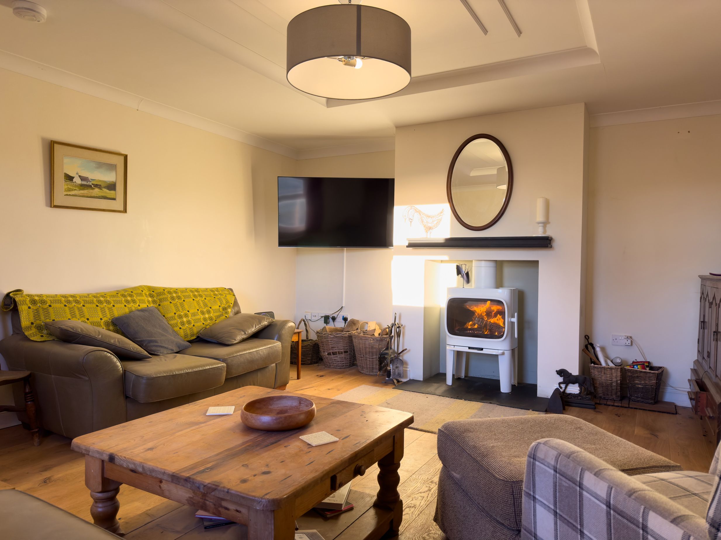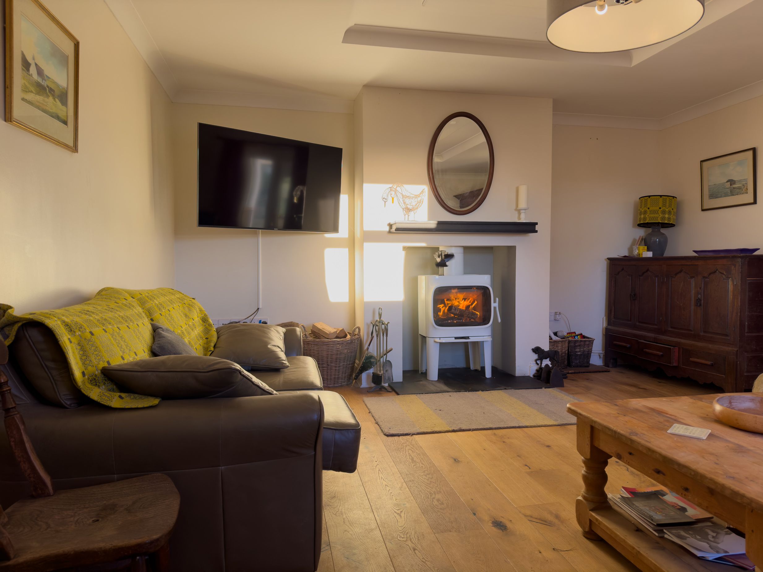 Amenities Oil central heating. Electric oven and hob, Rayburn, microwave, fridge/freezer, washing machine, dishwasher, kettle, wine rack. Smart TV. Fuel, power, and starter pack for woodburning stove inc in rent. Bed linen and towels inc in rent. Private driveway parking for 2 cars. Private front garden with lawn, patio, furniture and barbecue. Sorry, no pets and no smoking. Shop 0.9 miles, pub 0.5 miles, beach 1.1 miles. Note: The garden is not enclosed. Note: There are steps into the sitting room and double bedroom, please take care - not suitable for limited mobility. Note: Not suitable for children under 10. Note: Check-in from 4pm and check-out by 10am