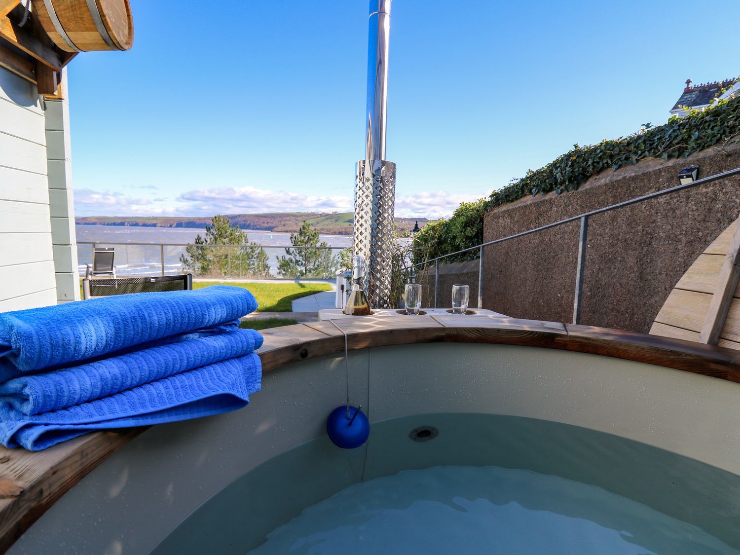 Holiday home Fronwig consists of a kitchen/diner with electric oven and hob, microwave, fridge/freezer, dishwasher and TV, a utility with washing machine, and a sitting room with TV and woodburning stove. The bedrooms consist of a king-size with en-suite, a double with en-suite, and two twins (one is zip/link), serviced by a bathroom, ground-floor shower room and cloakroom. Outside there is a multi-level, front garden with lawn, summerhouse, furniture, and wood-fired hot tub, off-road parking for one car with an EV charger, and a public car park nearby. Within 0.1 miles, you will find a shop, a pub and a beach, and please note that this is a non-smoking property. WiFi, fuel, power, starter pack for woodburning stove, bed linen and towels are all included in the price. Two well-behaved pets welcome. For your next coastal retreat, choose Fronwig. Note: Please be aware that the parking space is quite tight. Note: There are steps to the exterior of the home, unsuitable for those with limited mobility.