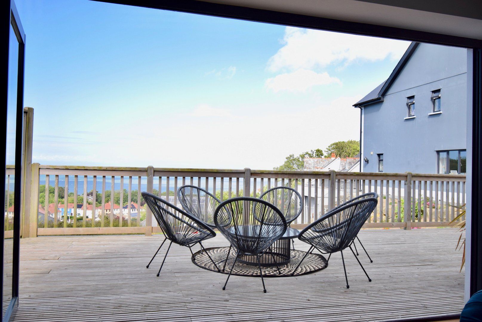 Holiday home This detached house has an open-plan living space with a kitchen, a dining area 14 guests, and a sitting area with Smart TV and woodburning stove. Amenities include an electric double oven, steam oven, gas hob, microwave, American-style fridge/freezer, washing machine, tumble dryer, dishwasher. There are six bedrooms: two king-size with en-suite showers, two king-size, second-floor twin, and second-floor twin with trundles, along with a bathroom, second-floor shower room, and ground-floor wet room. To the front, there is a raised decking with furniture and off-road parking for four cars, and to the rear, an enclosed multi-level garden with hot tub and furniture. Within 0.4 miles, there is a shop, within 0.1, a pub, and within 0.6, a beach. WiFi, fuel, power, bed linen and towels are all included. A cot and two highchairs are available. Two well-behaved pets welcome, but please, no smoking. Note: A luxury hamper is provided. Enjoy sea views and beach days with your loved ones at Ty Ni. Guests can sign in to use their own Netflix account.