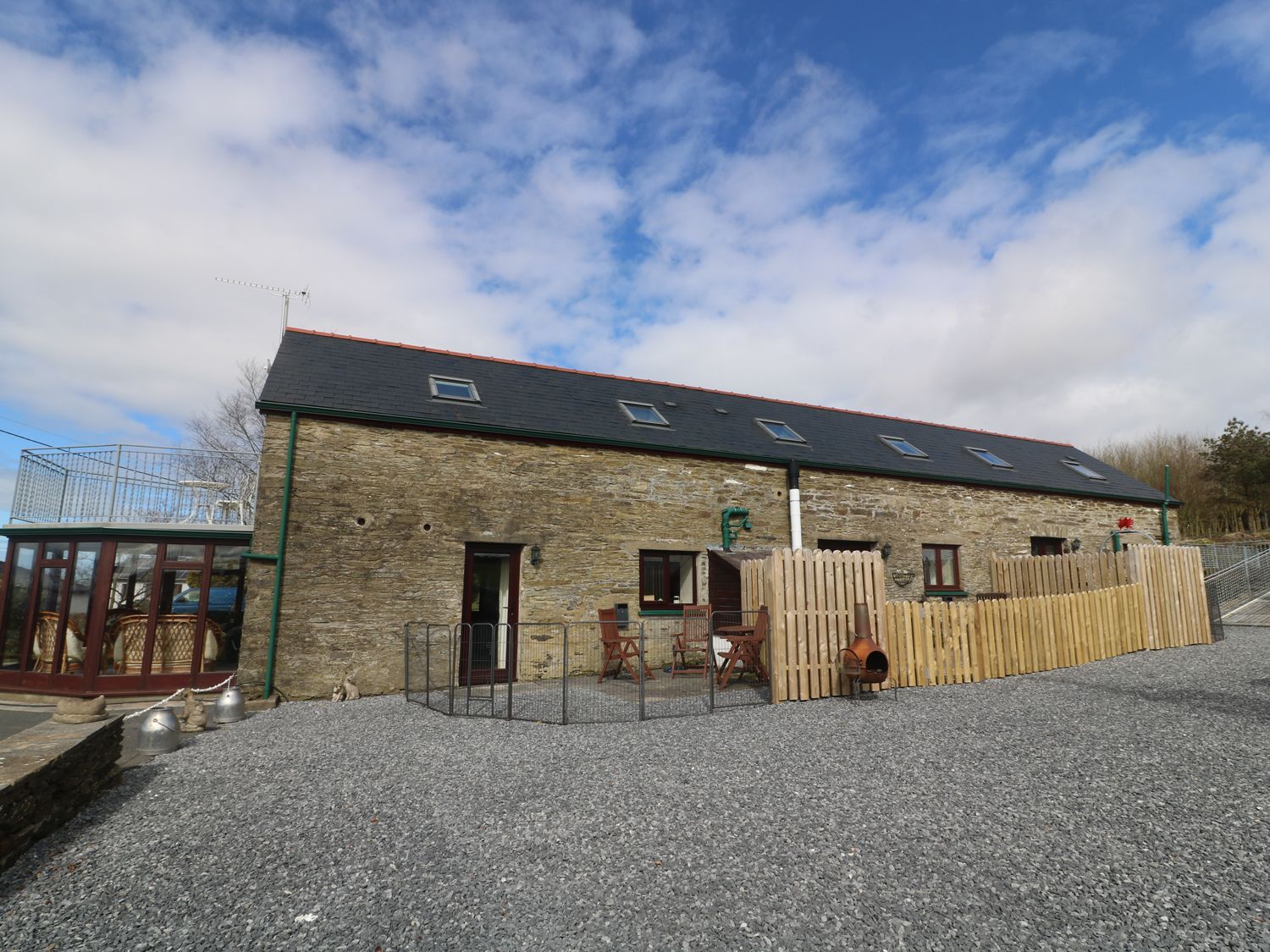 Holiday home Cherry Cottage is a fantastic barn conversion with a hot tub, surrounded by countryside near Newcastle Emlyn. The cottage sleeps four people in two bedrooms which are a double and a twin room. There is also a shower room and an open plan living area with a kitchen, dining area and a sitting area with an electric fire. Smart TV and Wifi Outside there is a small enclosed patio garden and an elevated garden with a hot tub. Off road parking is also available for one car with a visitor parking space. Perfect for small families, Cherry Cottage provides a wonderful base near the coast. Property does not except children under 12. There is a GHB of £100 payable to the owner.