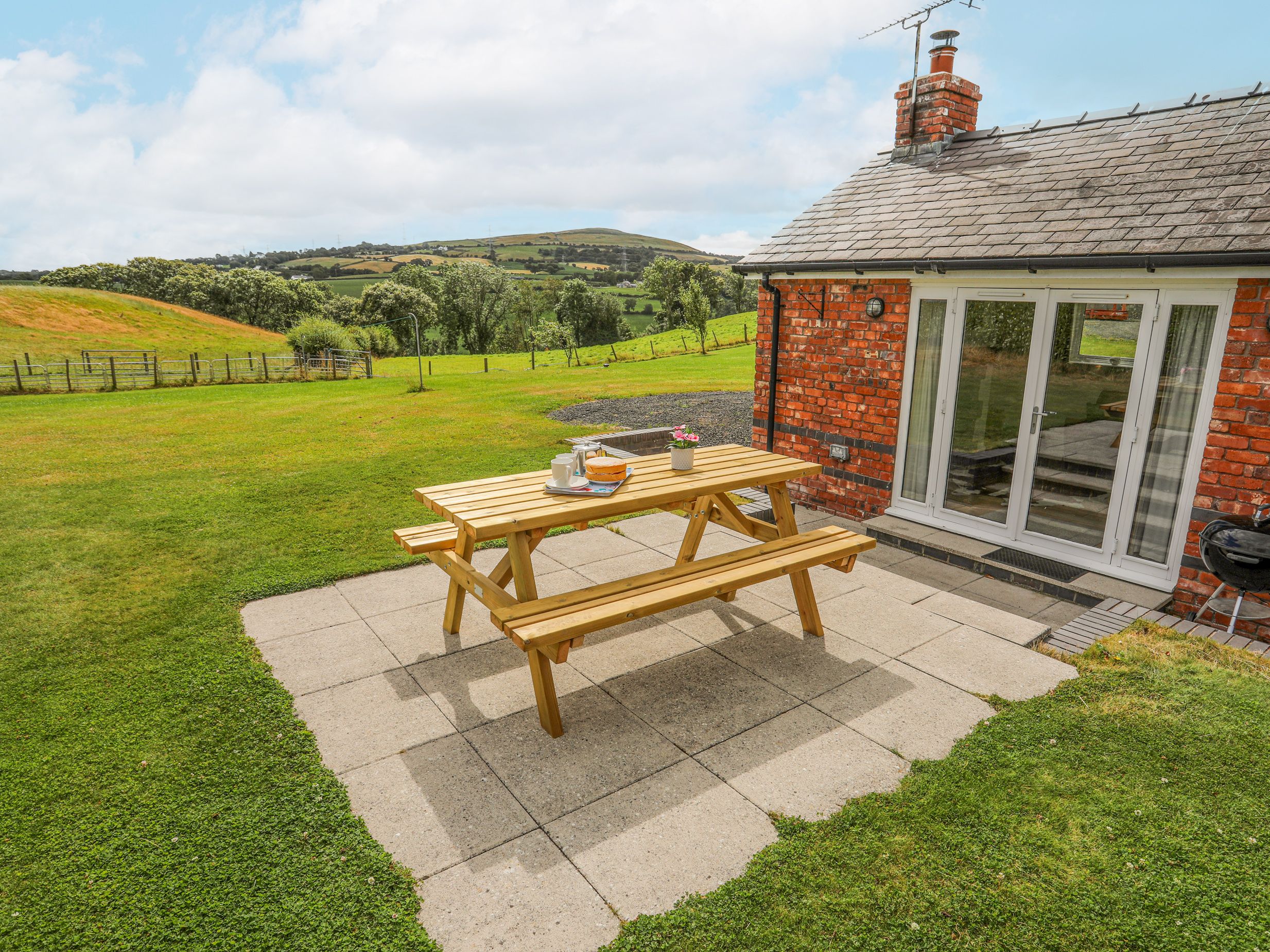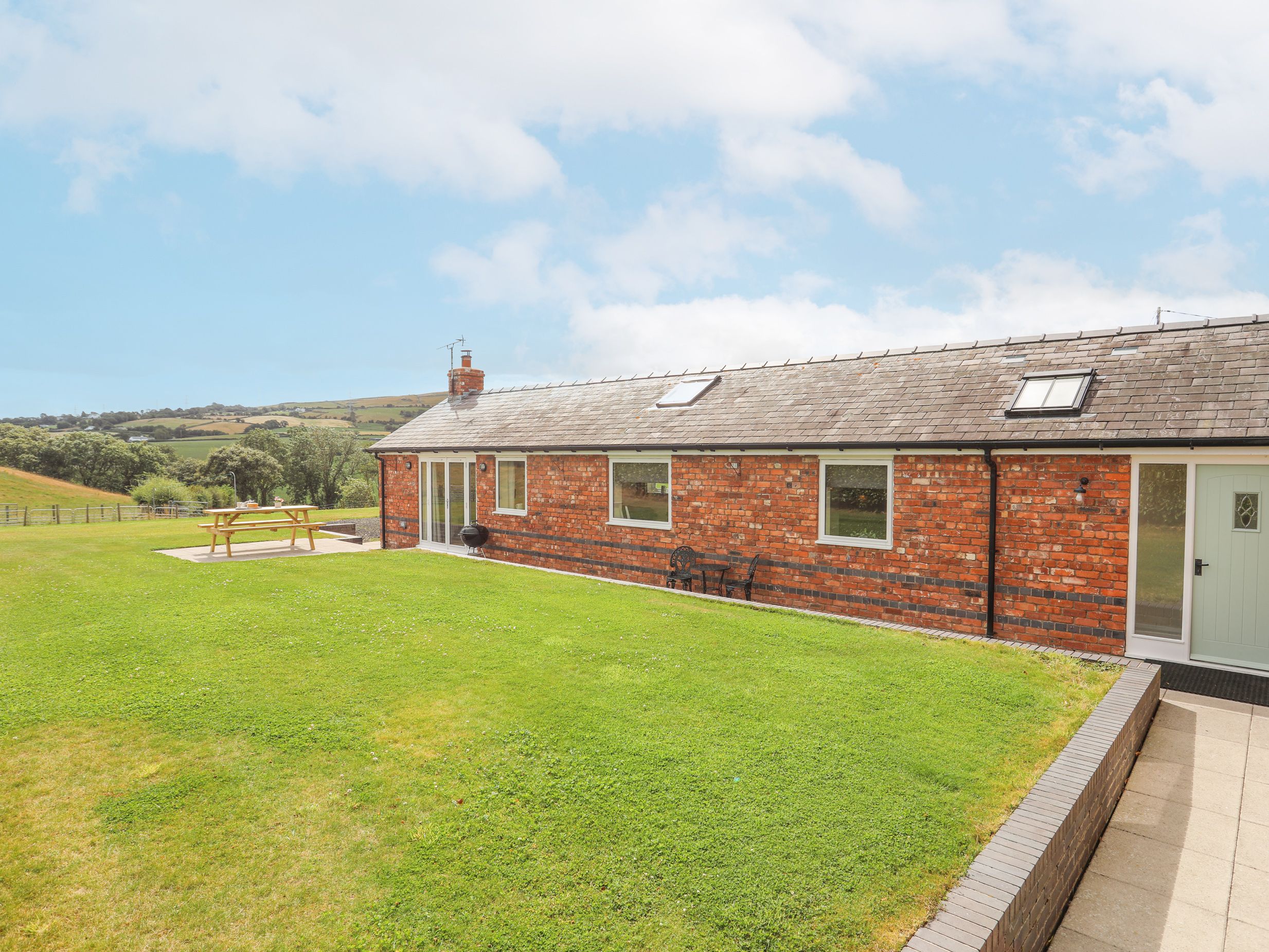 Holiday home The Piggery consists of an open-plan living space with a kitchen, dining and sitting area with a Smart TV, woodburing stove, dining seating four six, breakfast bar seating for three, an electric AGA, microwave, fridge/freezer, washing machine, dishwasher, kettle and toaster. The bedrooms include a king-size with ensuite shower room, a super king-size (zip/link can be twin on request) and a twin. These are serviced by a family bathroom with bath and walk in shower. Outside, there is an enclosed side garden with a large lawn, patio area and a picnic bench plus private driveway parking for three cars. There is a highchair and travel cot available. Sorry, no pets and no smoking at this property. Guests can find a shop and a pub within 2.2 miles. WiFi, fuel, power, bed linen and towels are all included in the price. The Piggery promises a wonderful stay in North Wales. Note: This property is near a working farm. Note: Check-in from 3pm and check-out by 10am. Please note this property only accepts a minimum of 3 night stays