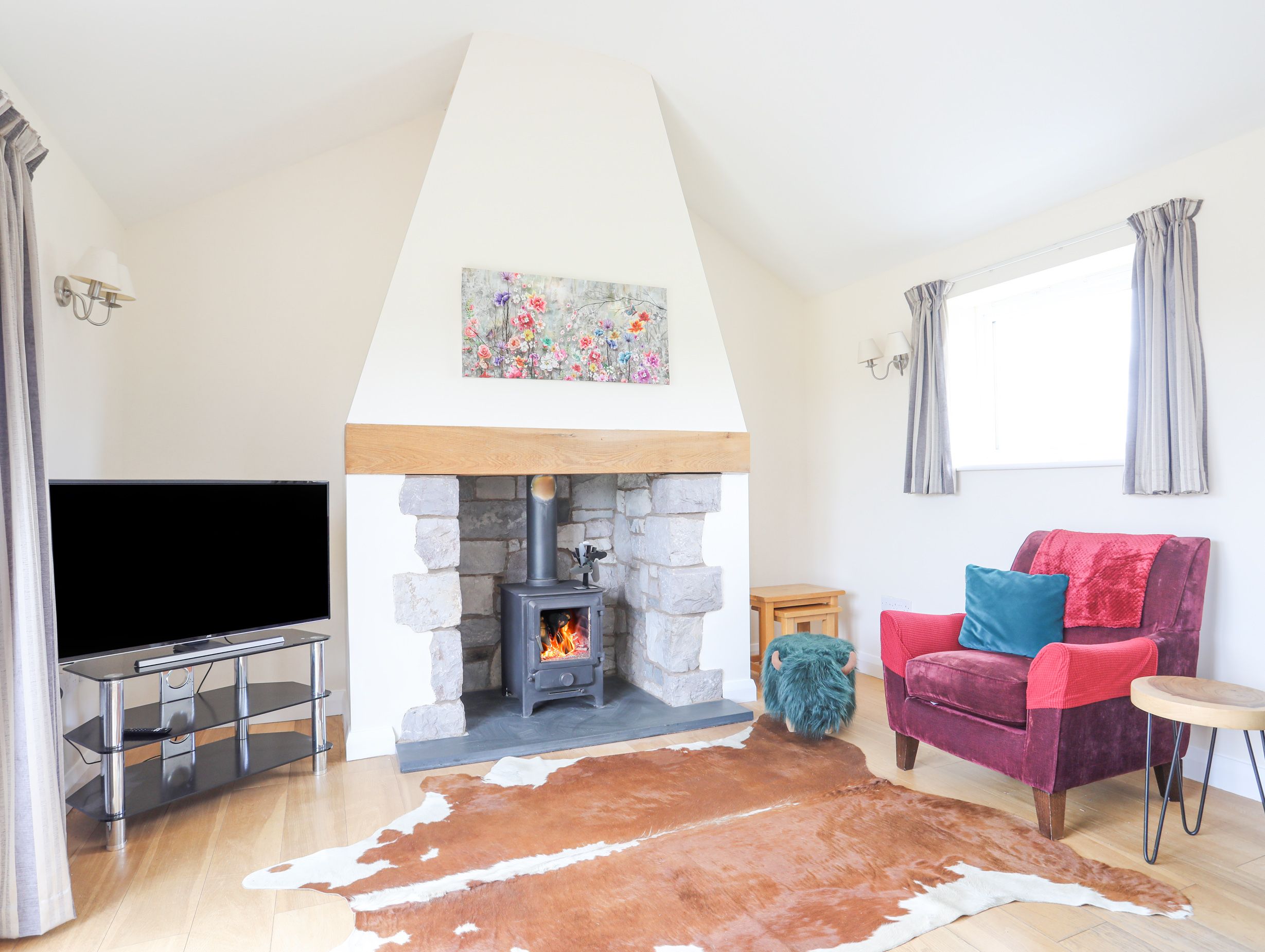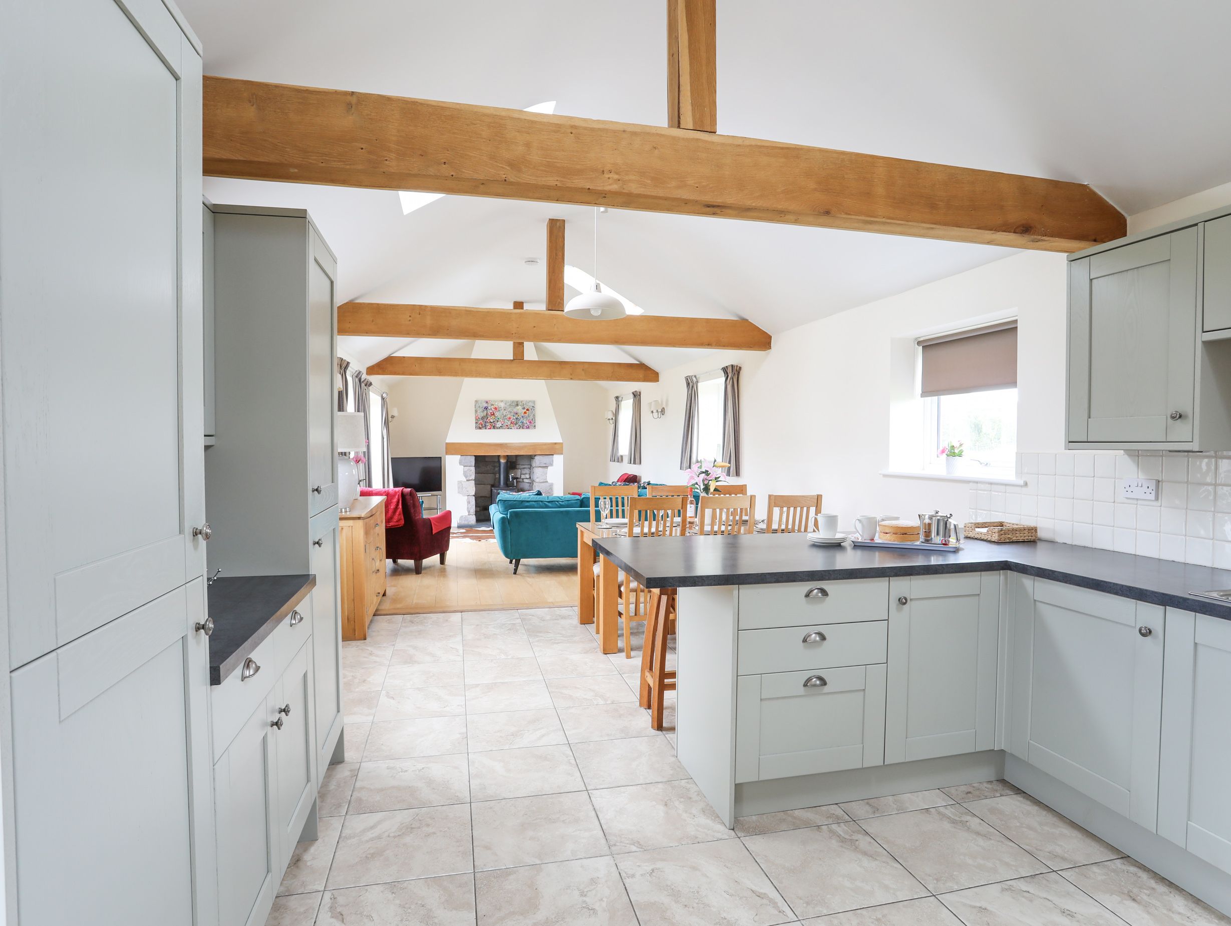 Accomodation Details Single-storey. Three bedrooms: 1 x king-size with TV and en-suite walk-in shower, basin, heated towel rail and WC, 1 x super king-size (zip/link can be twin on request) with TV, 1 x twin. Bathroom with bath, walk-in shower, basin, heated towel rail and WC. Open-plan living space with kitchen, dining and sitting area with woodburning stove and TV. Utility