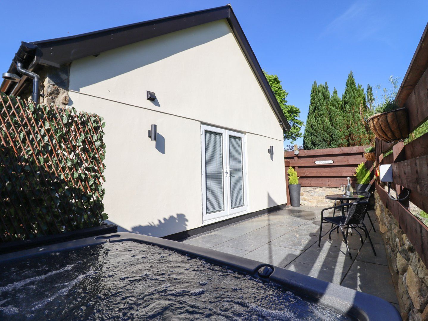 The living areas in the detached cottage consist of an open-plan living space with a kitchen offering an electric hob, microwave, fridge, washing machine, a dining area with seating for two people and a sitting area with a TV. There is one mezzanine double bedroom and a ground-floor shower room. Outside, there is a private side patio with furniture and a hot tub, along with one off-road parking space. Within 0.7 miles, you'll find a shop, and within 0.3, a pub. Please be aware that this property does not welcome children, pets or smoking. WiFi, fuel, power, bed linen and towels are all included in the price. Choose Glyndwr Barn for a memorable break in Snowdonia National Park with your partner. Note: This property rests on the same site as the owner's home. Note: Please mind your step on the spiral staircase.