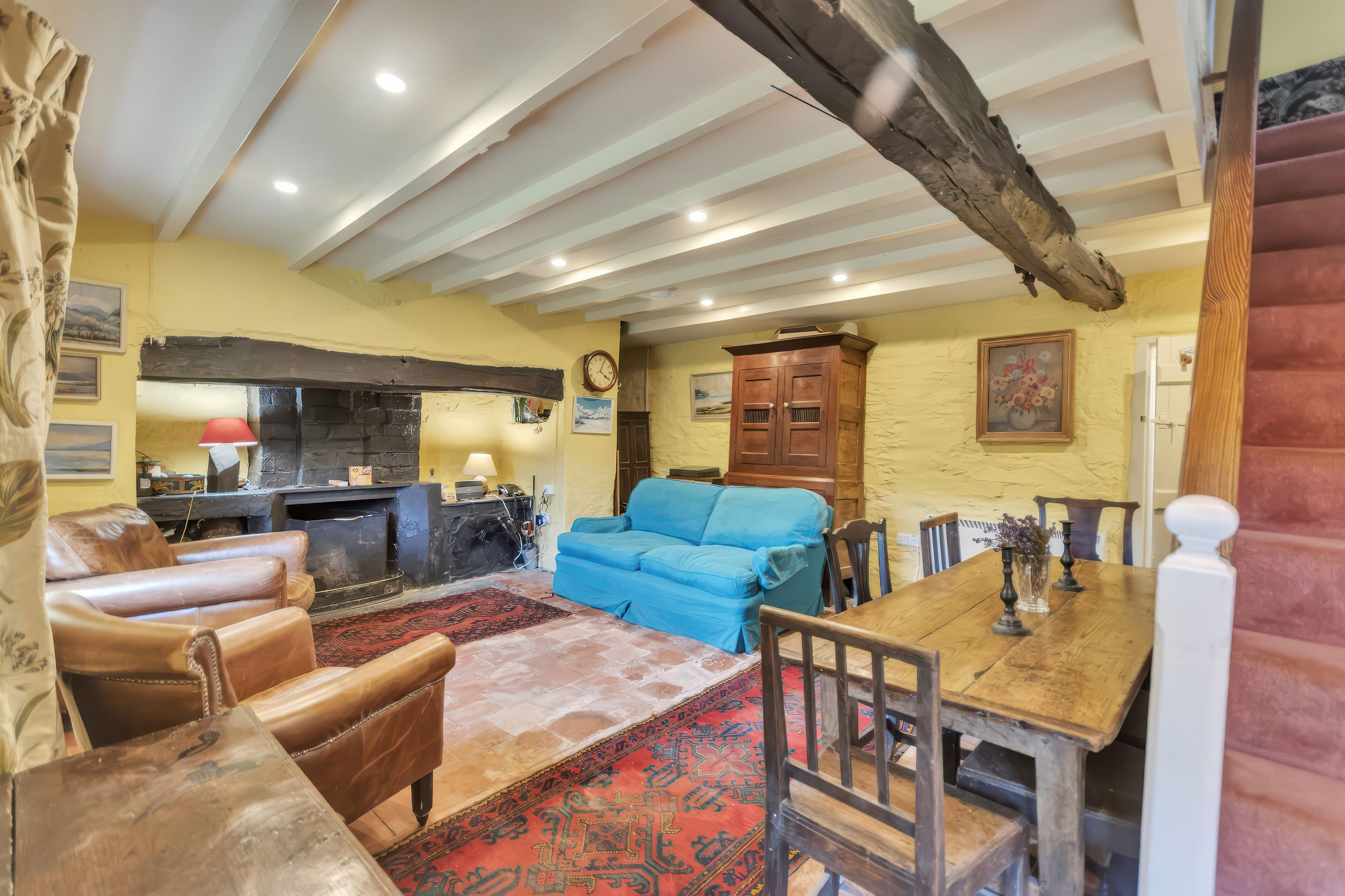 Accomodation Details Three bedrooms: 1 x king-size, 1 x twin, 1 x single. Ground-floor bathroom with corner bath, walk-in shower, basin, and WC. Kitchen. Dining/living area with open fire. Utility