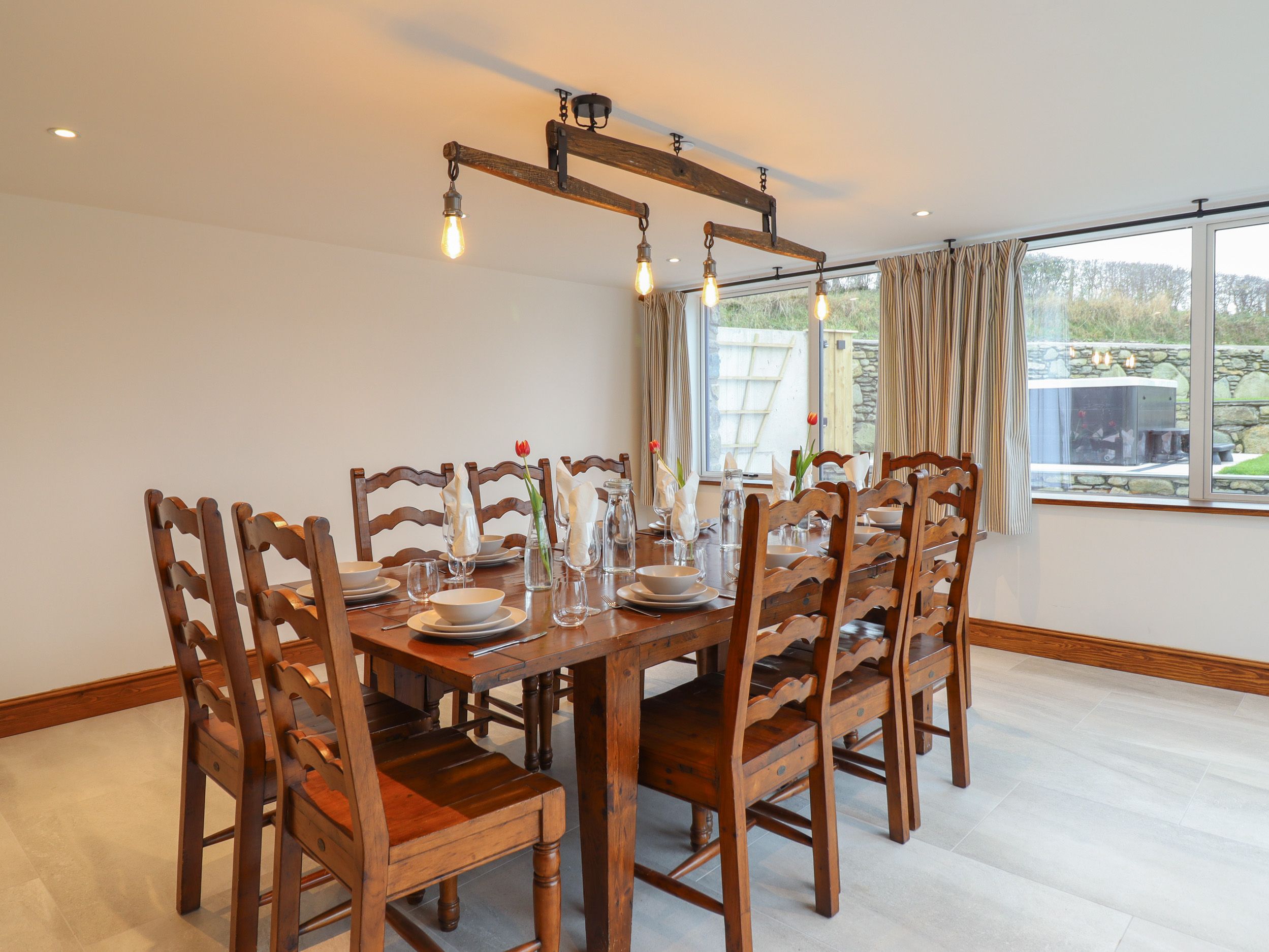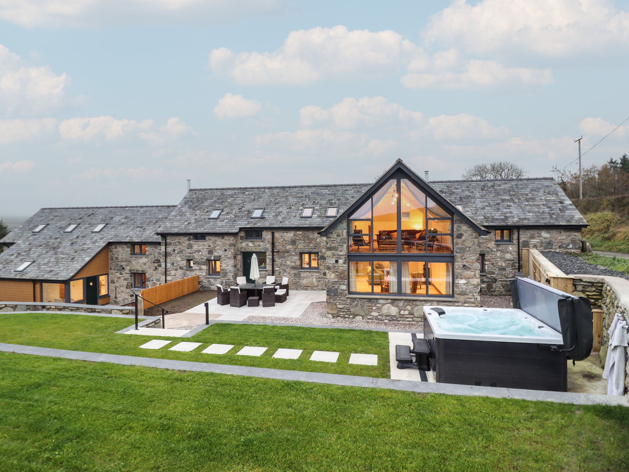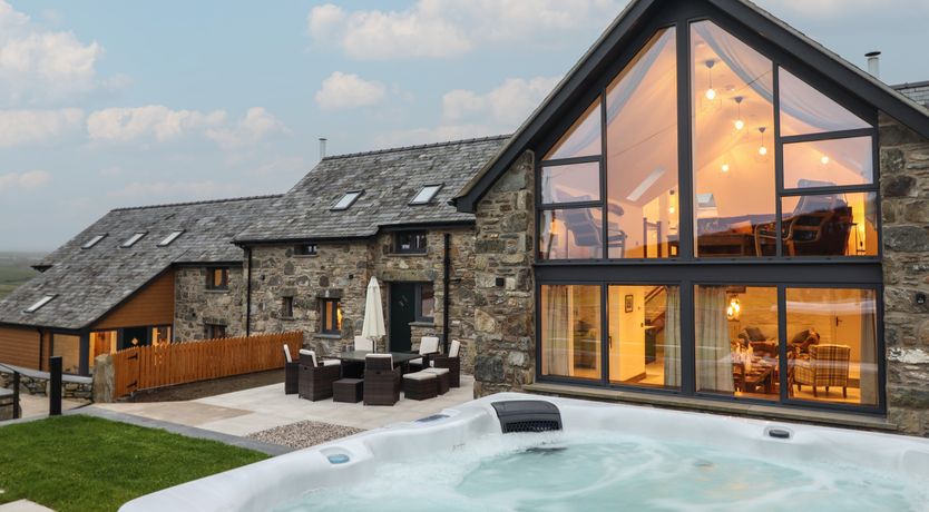 Holiday home Y Côr consists of an open-plan living space with a breakfast bar seating four, double electric oven, induction hob, dishwasher, fridge/freezer, slow cooker, coffee maker, microwave, kettle, toaster, a woodburning stove, Smart TV, dining seating 10, and a utility with washing machine. There is a snug/games room with table football and a cloakroom. The bedrooms consist of a ground-floor super-king-size (zip/link) with TV and en-suite, super-king-size (zip/link) with en-suite, ground-floor double with en-suite, and family room with super-king-size (zip/link) and single with TV, serviced by a bathroom. There is an enclosed front multi-level garden with lawn, patio, gravel, furniture, hot tub, and shared off-road parking for three cars. WiFi, fuel, power, starter pack for woodburning stove, bed linen, and towels included. Sorry, no pets and no smoking. Shop 3.1 miles, pub 2.2 miles. Enjoy a memorable escape to Conwy at Y Côr. Note: There are two steps down to the ground-floor double bedroom. Note: Steps in the garden.