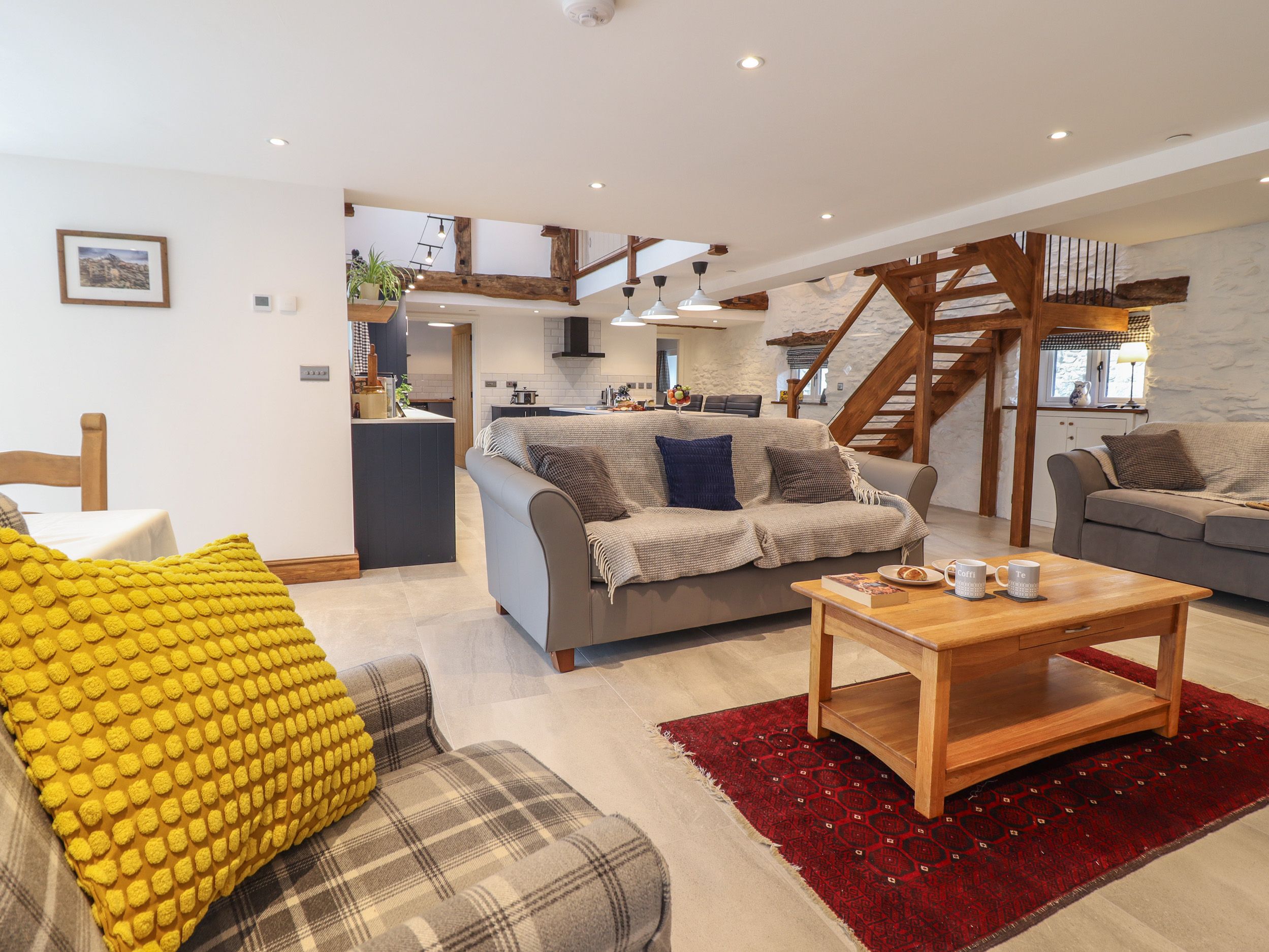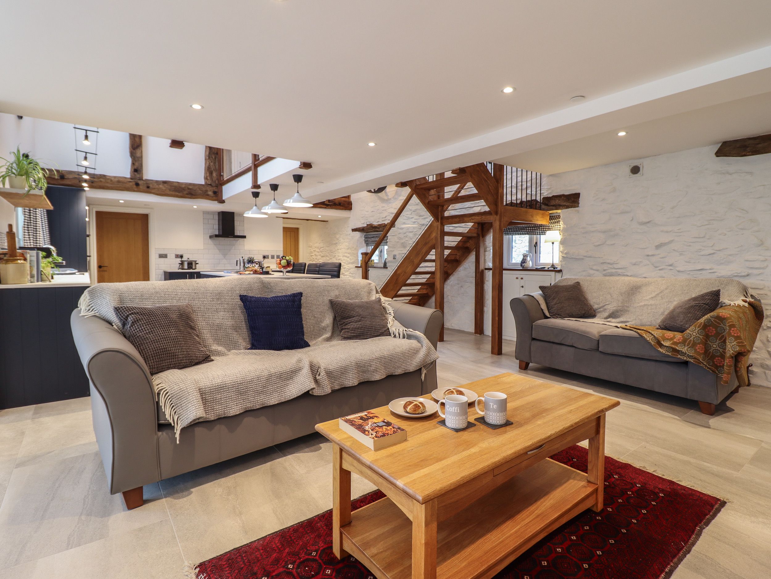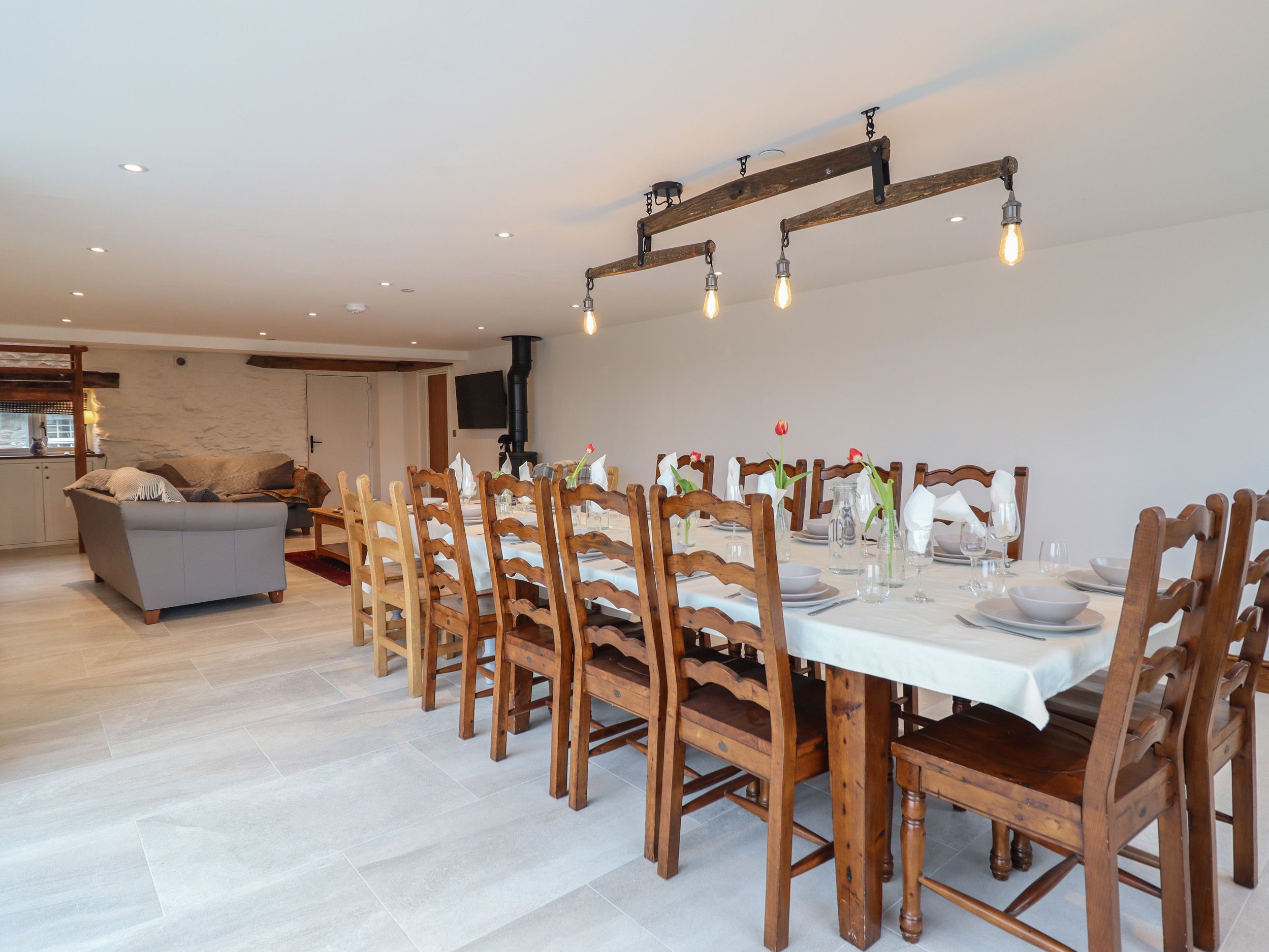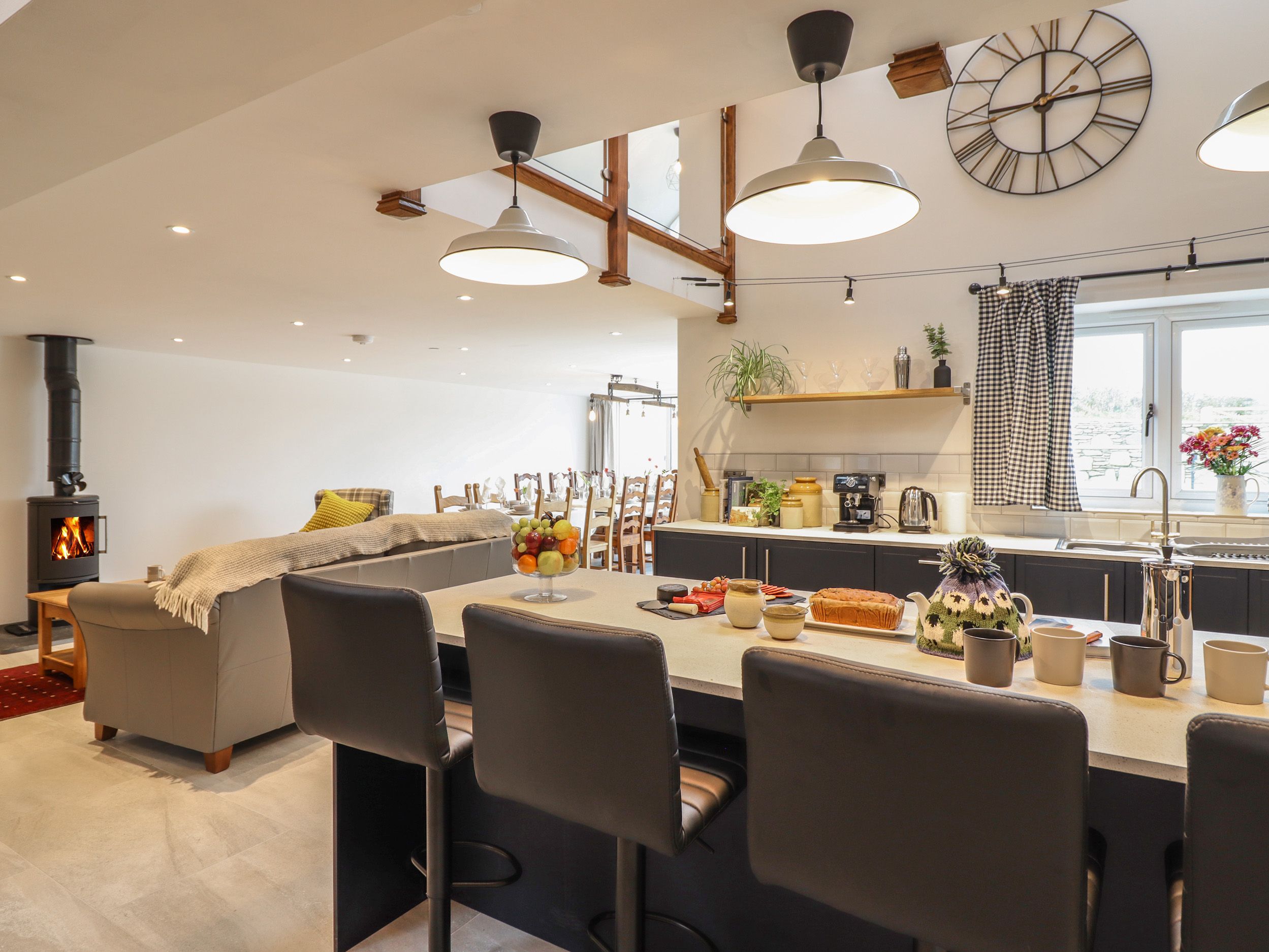 Accomodation Details Four bedrooms: 1 x ground-floor super-king-size (zip/link, can be twin on request) with Smart TV and en-suite wet room with accessible walk-in shower, basin, heated towel rail, and WC and working space; 1 x super-king-size (zip/link, can be twin on request) with en-suite with walk-in shower, basin, heated towel rail, and WC; 1 x ground-floor double with en-suite with walk-in shower, basin, heated towel rail, and WC, 1 x family room with super-king-size (zip/link, can be twin on request) and single with Smart TV. Bathroom with bath, walk-in shower, hand-held shower, basin, heated towel rail, WC. Utility with washing machine. Cloakroom with basin, heated towel rail and WC. Open-plan living space with kitchen, dining area and sitting area with woodburning stove. Snug/games room