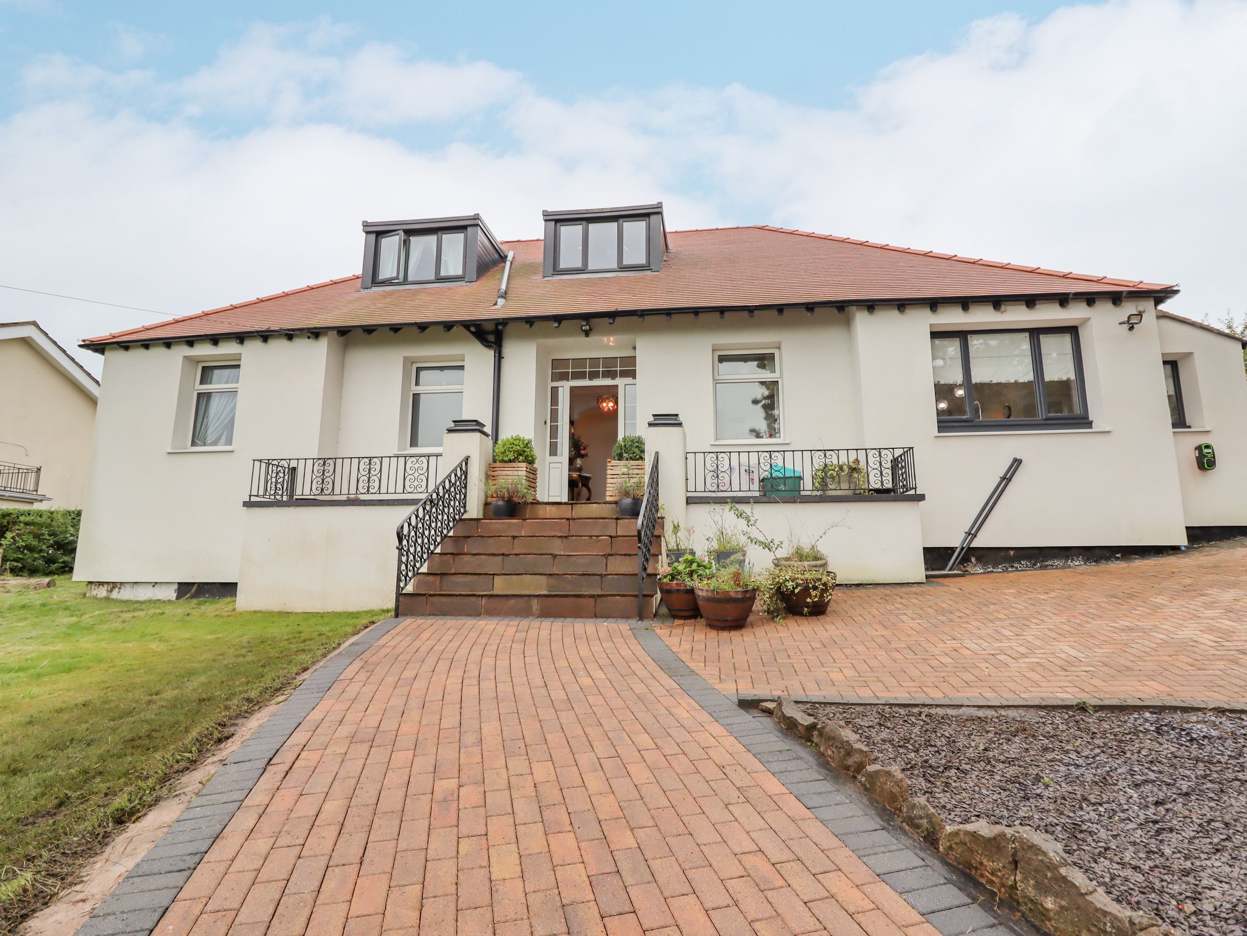 Amenities Central heating. Electric oven, gas hob, microwave, fridge/freezer, washing machine and dishwasher. TV and WiFi. Fuel and power inc. in rent. Bed linen and towels inc. in rent. Travel cot and highchair available. Off-road parking for 5 cars with EV charging. Front, rear, and side enclosed gardens with hot tub, lawn, patio and furniture. Sorry, no pets and no smoking. Shop and pub 0.1 miles, beach 1.5 miles. Pwllycrochan Woods <0.5mile. Welsh Mountain zoo < 0.5 mile