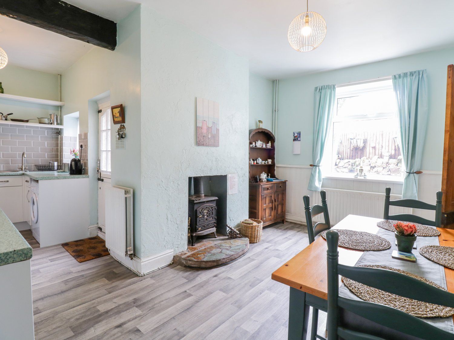 Amenities Gas heating with 2 x woodburning stove. Microwave, electric oven and hob, integrated fridge & freezer, washing machine, selection of books and games, Smart TV with Freeview, 2 x TVs with Freeview and WiFi. Bed linen and towels inc. in rent. Fuel, power and starter pack for stoves inc. in rent. Off-road parking for one car. Rear terrace garden with furniture and pizza oven, in addition lawn area with further seating and a summer house. Two well-behaved pets welcome. Sorry, no smoking. Shop within 0.7 miles, pub within 1.6 mile. Note: Steps up to the lawn garden area are slippery when wet, children will need to be supervised when outdoors