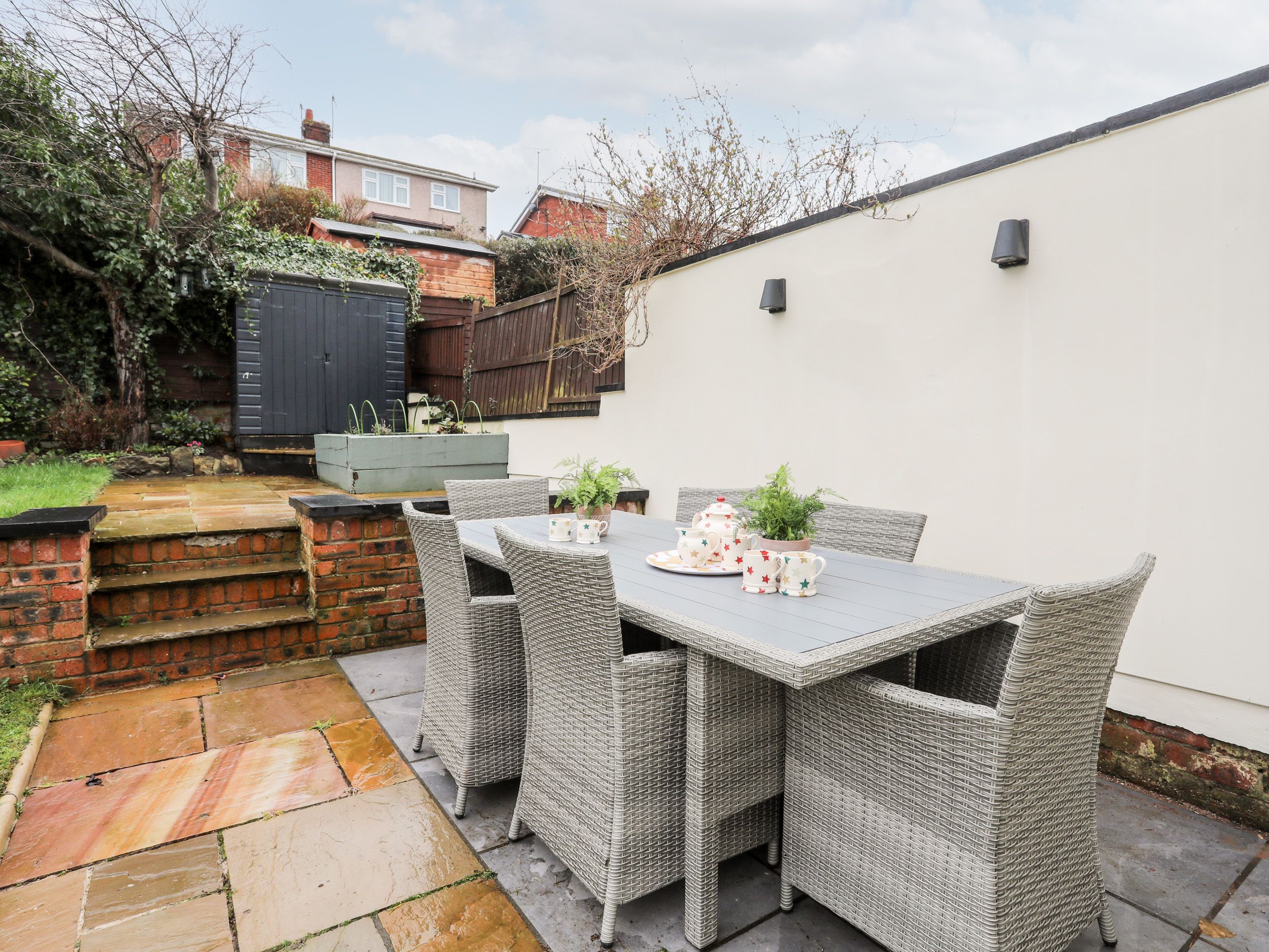 Amenities Gas central heating with woodburning stove and gas fire. Electric oven and hob, microwave, fridge, freezer, dishwasher, washing machine, tumble dryer. Smart TV, DVD, WiFi, selection of books and DVDs. Fuel, power and starter pack for woodburning stove inc. in rent. Bed linen and towels inc. in rent. Travel Cot, linen NOT inc. On-street parking. Enclosed multi-level back garden with lawned areas, patio, fire pit, barbecue and furniture. Two well-behaved dogs welcome but to remain downstairs, (hence stairgate). Sorry, no smoking. Shop 0.2 miles, pub 0.6 miles, beach 2.2 miles. Note: There are steps leading up to the entrance and may not be suitable for those with limited mobility, and steps in the garden, please take care. Note: Check-in is from 4pm, check-out by 10am. There is a good housekeeping bond of £300