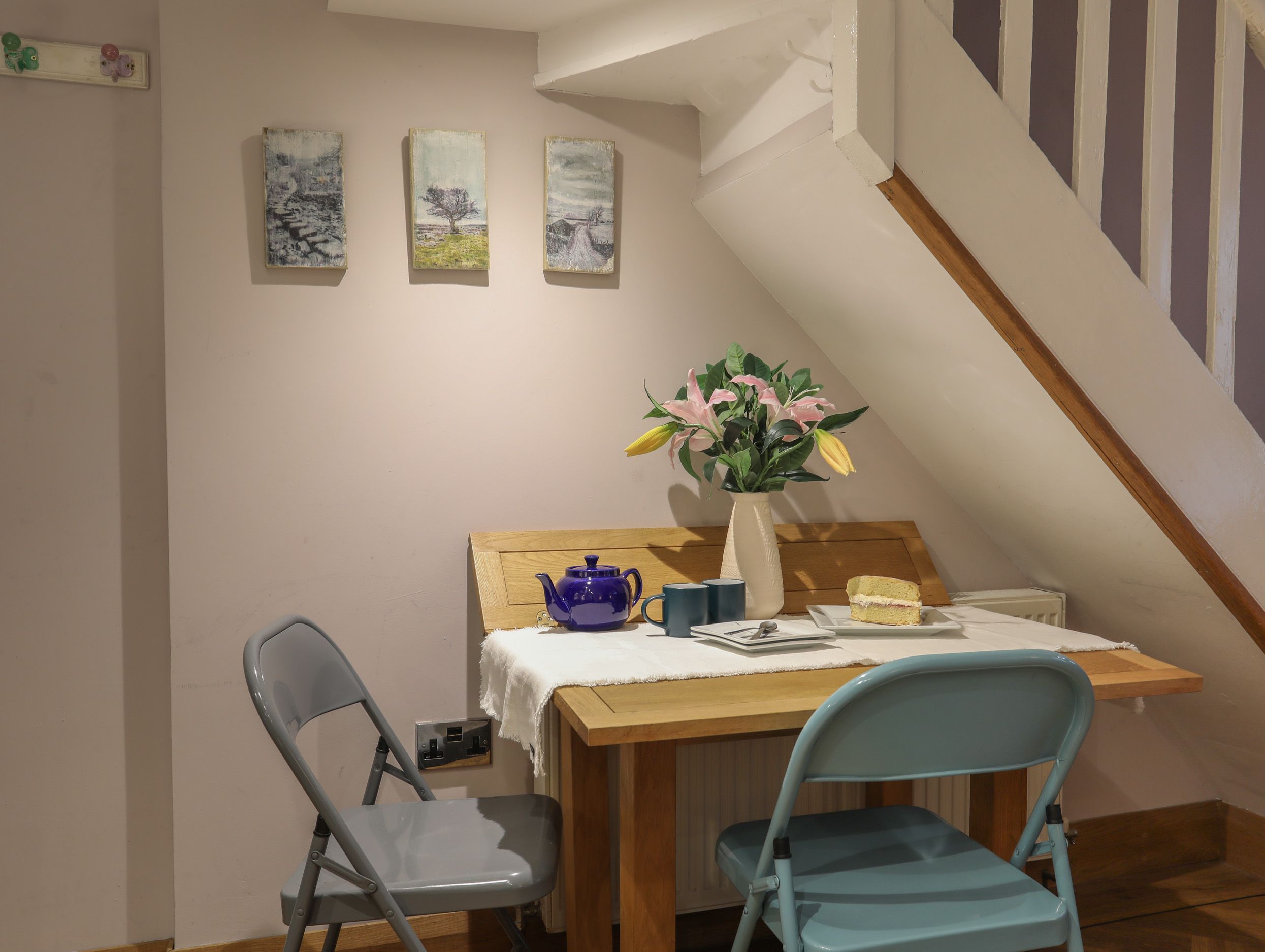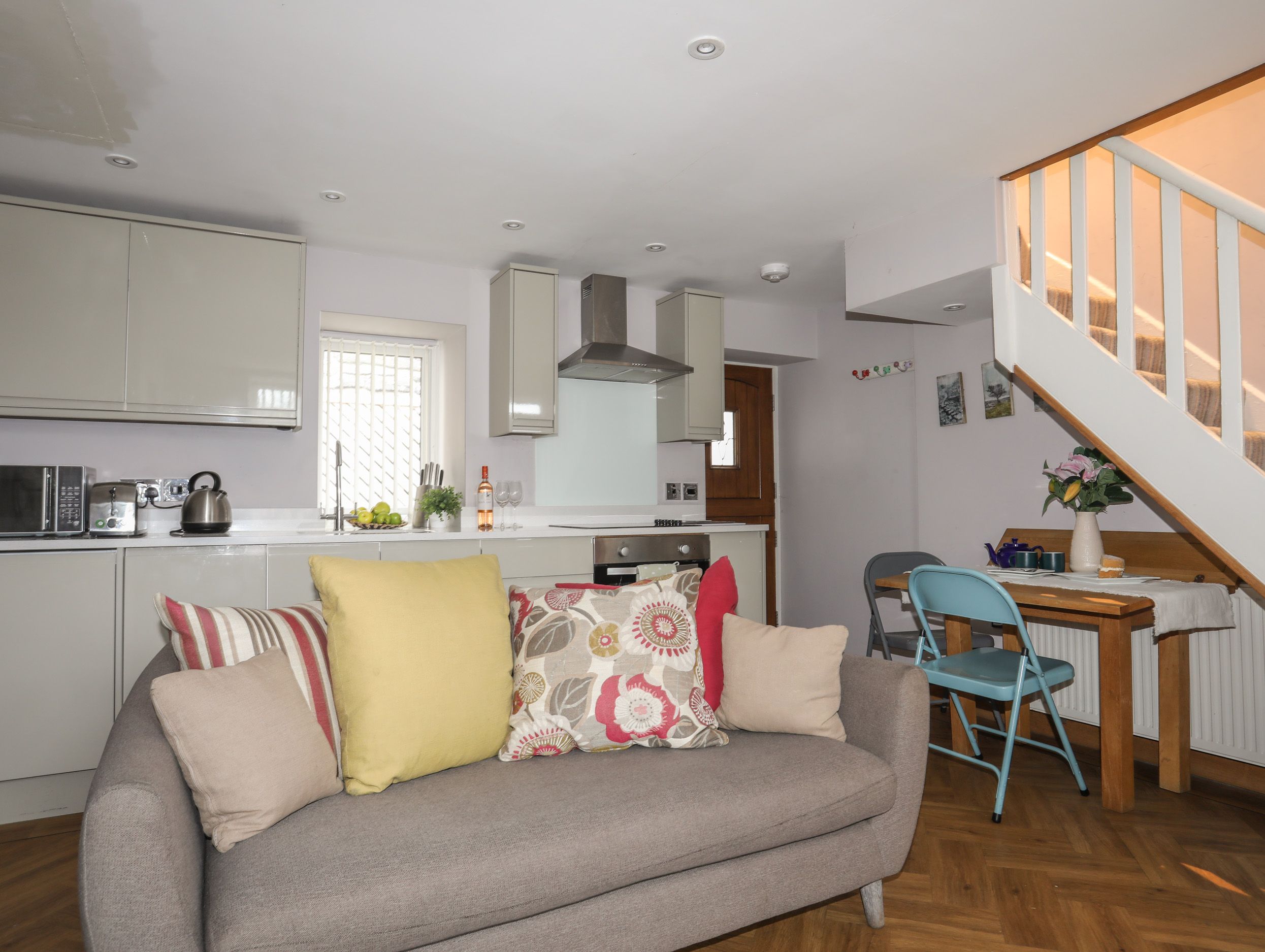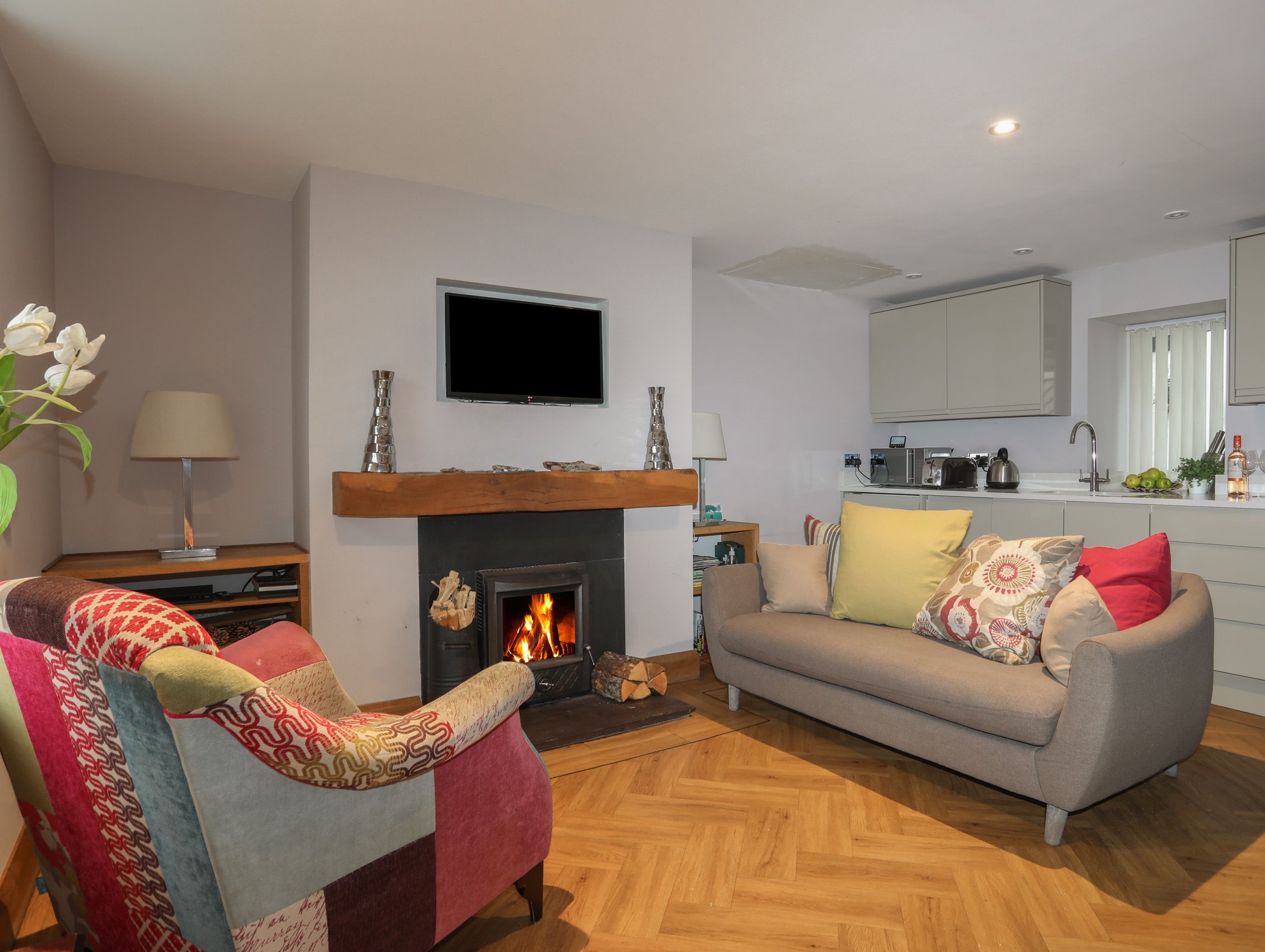 Accomodation Details Over two floors. One super-king-size double bedroom with en-suite shower, basin and WC. Open-plan living area with kitchen, dining area and sitting area with woodburning stove