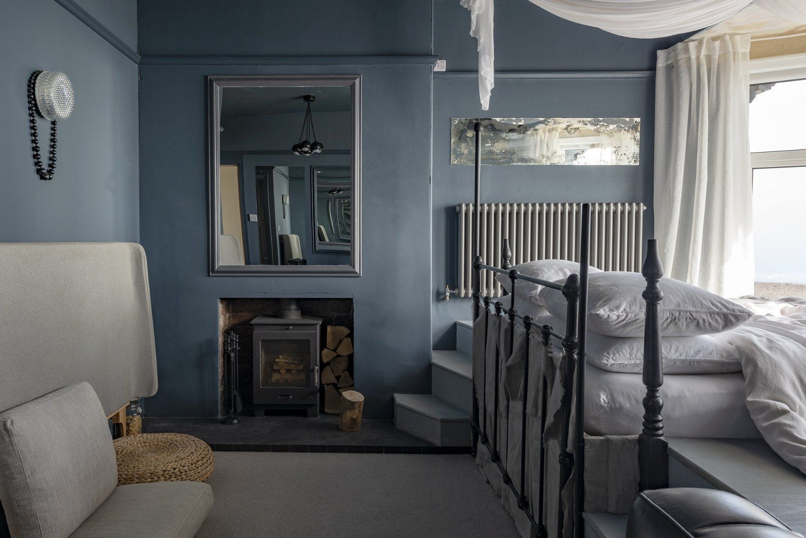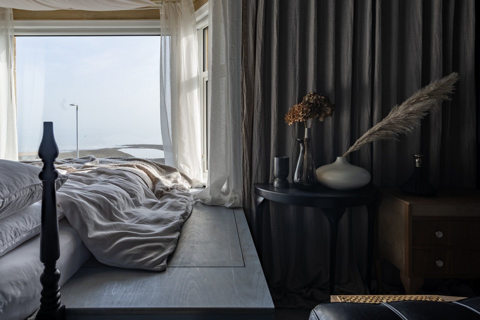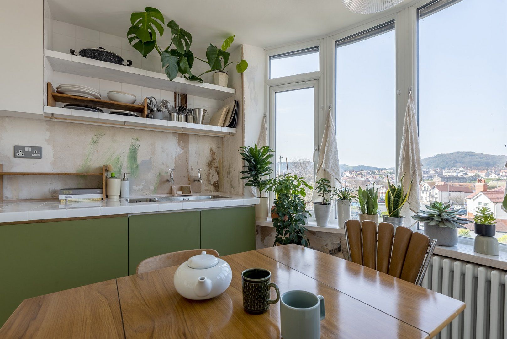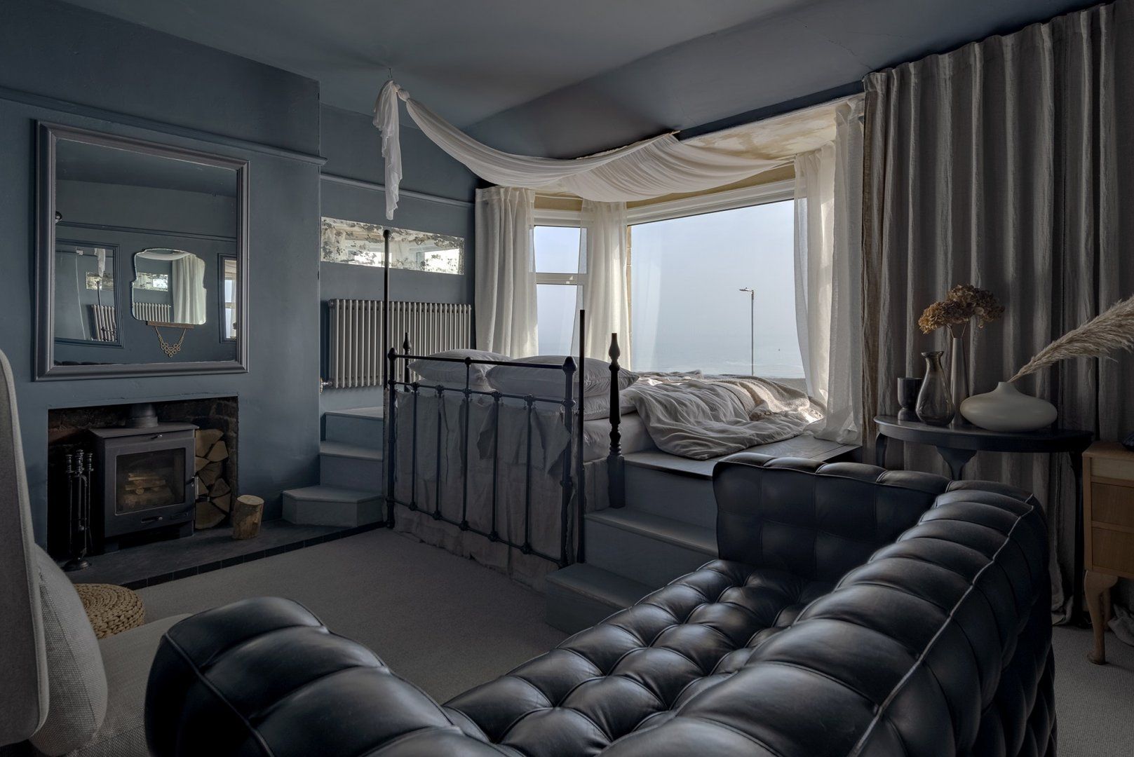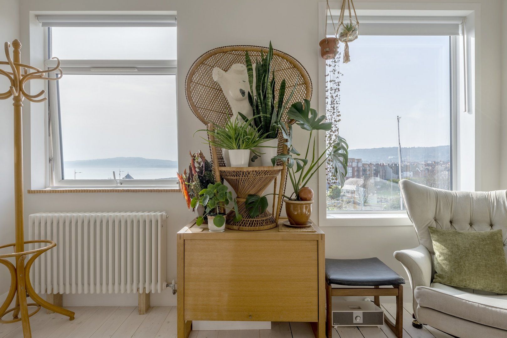 In a fabulous position in the seaside town of Rhos-on-Sea, this top floor home isn't just stylish, it's an eco-conscious traveller’s dream. With a tumble of house plants, eclectic vintage furniture, wood floors and bohemian art, it's a world away from the typical nautical theme you often see on the coast. Grab a yoga mat for a stretch at sunrise, then cradle your coffee by the window, with views of Bryn Euryn Nature Reserve in one direction and Colwyn Bay in the other. Beautifully contrasting the white main room, the bedroom feels like an intimate retreat with its dark walls and canopy bed facing the panoramic sea view. Always with one eye on sustainability, the host has left a few treats to get you started in the sunny kitchen, along with eco cleaning products. After exploring the beach, you’ll relish a soak in the vintage tub framed by the prettiest of pink tiles. For a magical end to your day, grab a glass of wine for a cosy evening by the bedroom fire. Out and about there are plenty of places to eat and drink in the town, and Conwy is just a twelve-minute drive away.