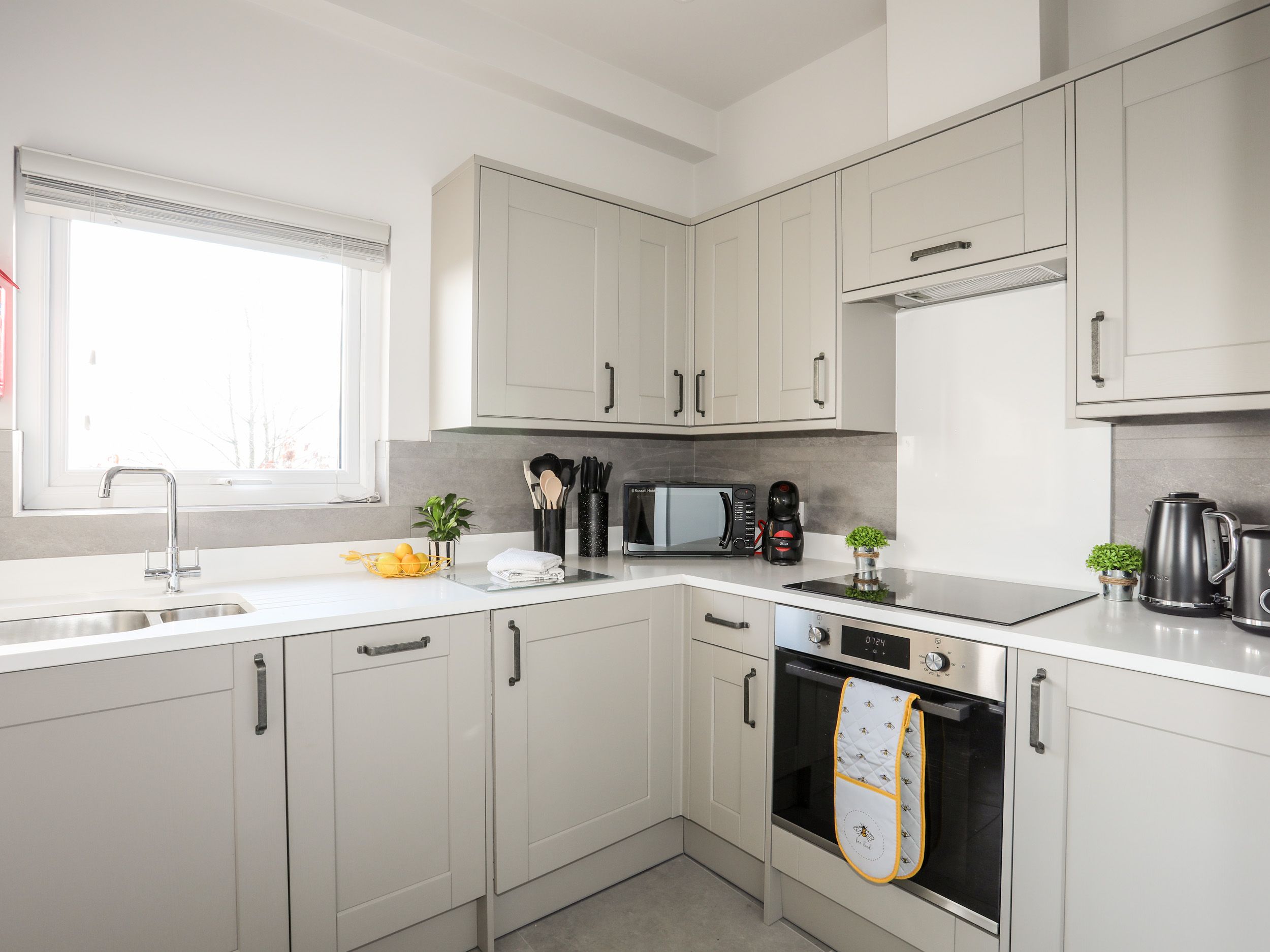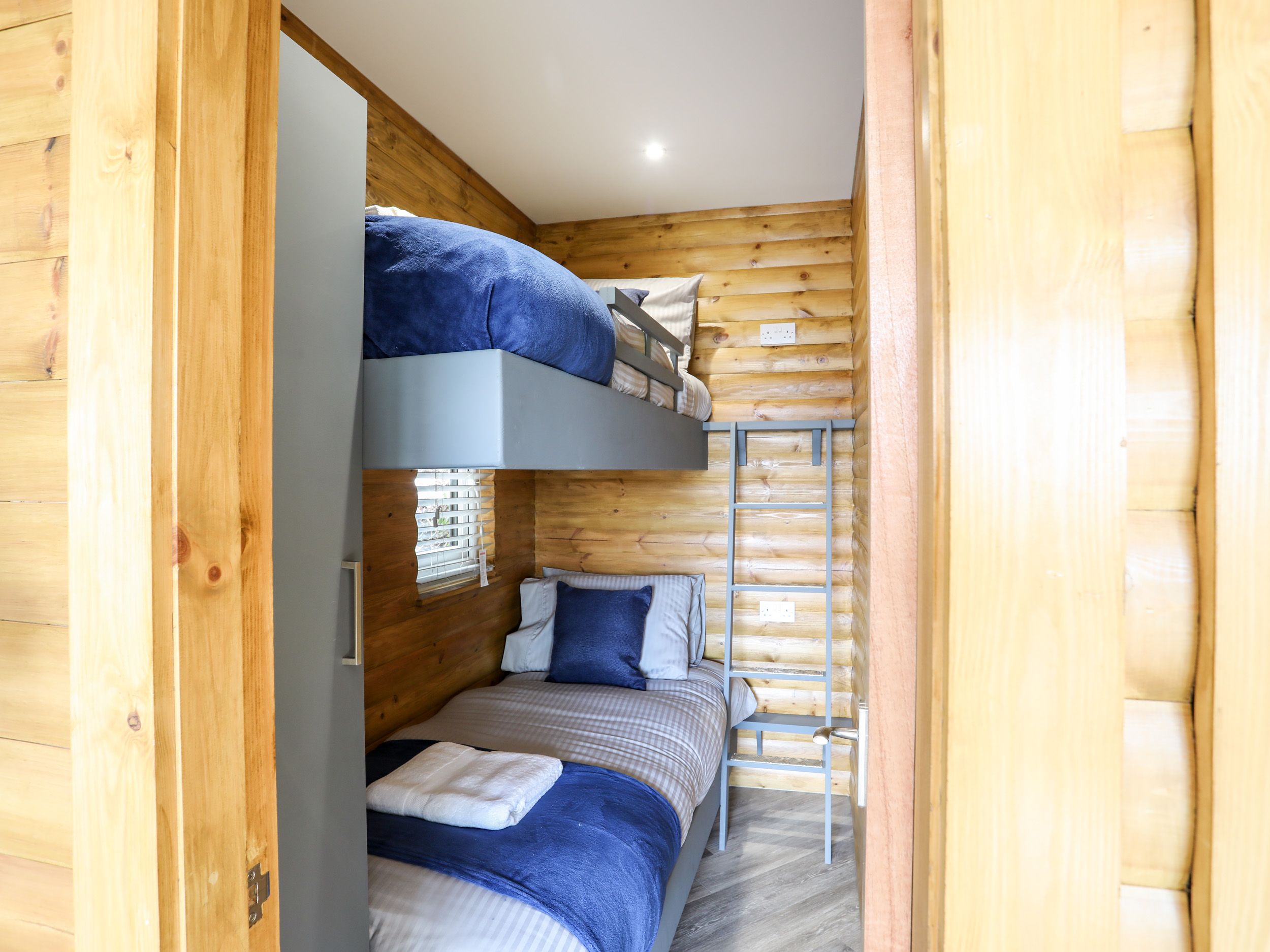 Holiday home The living areas in the property consist of a kitchen with oven, induction hob, grill, microwave, fridge, dishwasher, coffee machine and a living/dining room with dining seating for four, log effect fire and Smart TV. The bedrooms consist of a king-size and a bunk room, along with a shower room. Outside there is a front patio with lawned area, wood-fired hot tub, outdoor shower and furniture, roof terrace with patio and furniture, as well as off-road parking. Within 4.2 miles, you will find a shop, and within 1.3 miles, a pub, and please note that this is a non-smoking property. WiFi, fuel, power, bed linen and towels are all included in the price. There is a step down to the kitchen, please take care. Note: Two well-behaved dogs welcome at an additional charge of £15/pet.