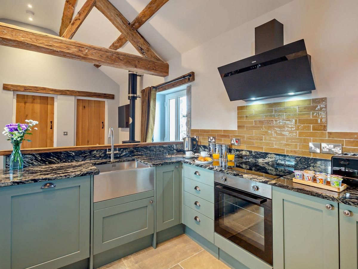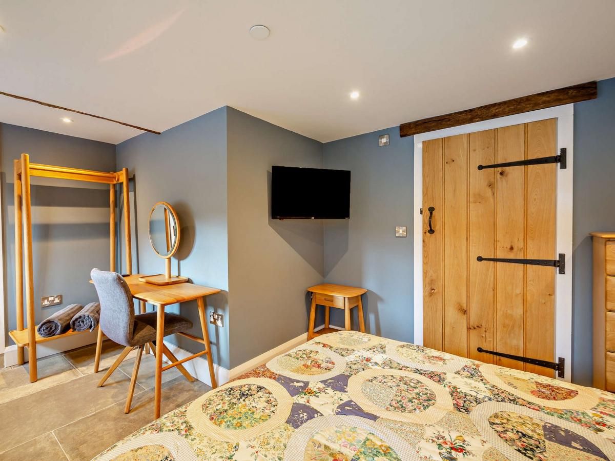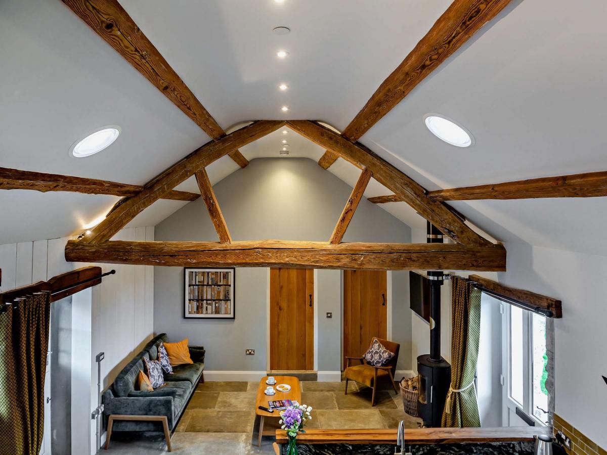 Welcoming four guests and two dogs, this quirky home has a mezzanine library/snug, enclosed garden boasting countryside views and characterful features throughout.