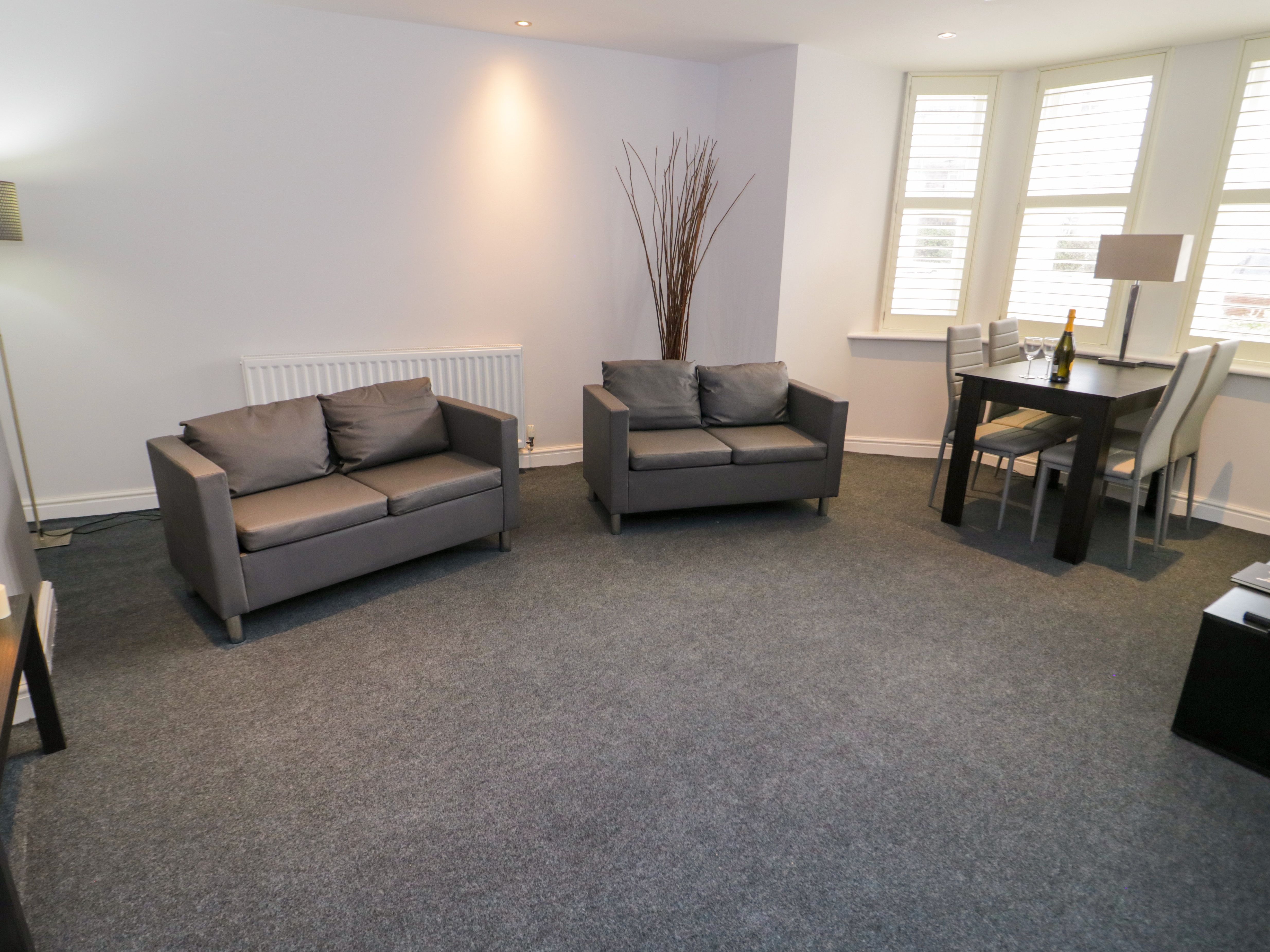 Accomodation Details Ground-floor apartment. Two bedrooms: 1 x double with TV, 1 x single. Shower room with walk-in shower, basin, heated towel rail, and WC. Kitchen. Living/ dining room with electric fire