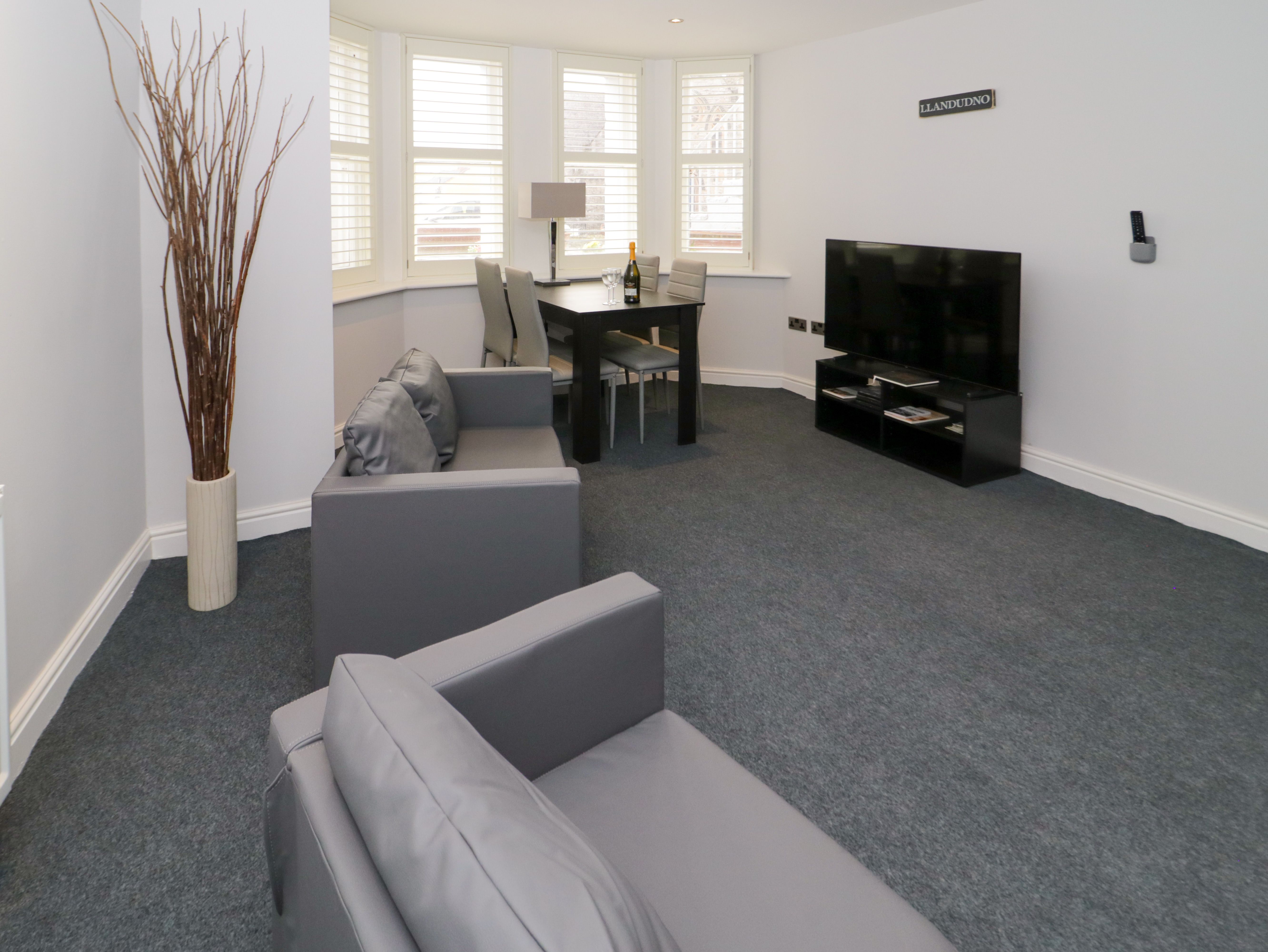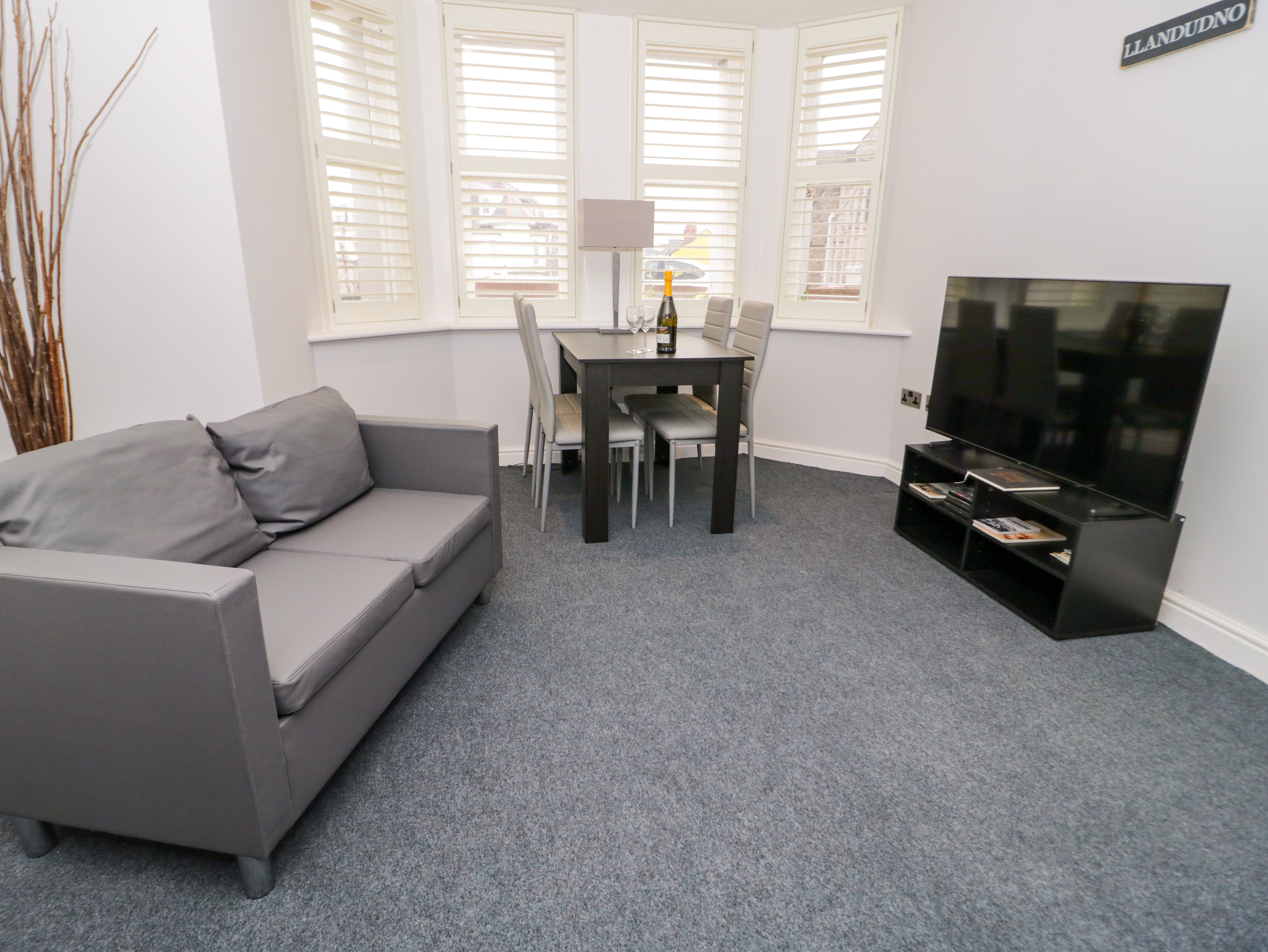 Holiday home Apartment 1, a ground-floor accommodation, consists of a kitchen with an electric oven and hob, microwave, washing machine, dishwasher, a living/dining room with a TV, electric fire, and a dining area seating three people. The bedrooms consist of a double with a TV and a single, serviced by a shower room. Outside, there is off-road parking for 2 cars. You'll find a shop in 0.2 miles, a pub in 0.1 miles, and a beach in 0.3 miles. WiFi, fuel, power, bed linen and towels are all included in the price. Apartment 1 is an ideal base in the heart of Llandudno. Note: There is a step down to the shower room.