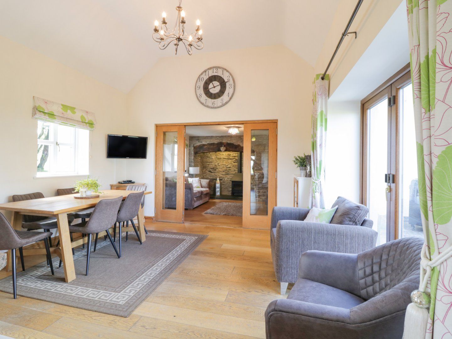 Amenities Oil central heating with woodburning stove. Electric oven, ceramic hob, microwave, fridge/freezer, washing machine in utility, dishwasher, 2 x TVs with Freeview, DVD, WiFi, selection of books, games and DVDs. Fuel, power and starter pack for stove inc. in rent. Bed linen and towels inc. in rent, along with beach towels. Highchair. Ample off road parking. Outside eating area with table and chairs for 6. Paved patio with furniture and raised lawned garden with children's play area and furniture (seats 2). Hot Tub. Coal BBQ. Sorry, no pets and no smoking. Shop and pub 3 miles. Note: Driveway is a farm track, not suitable for low suspension vehicles.
