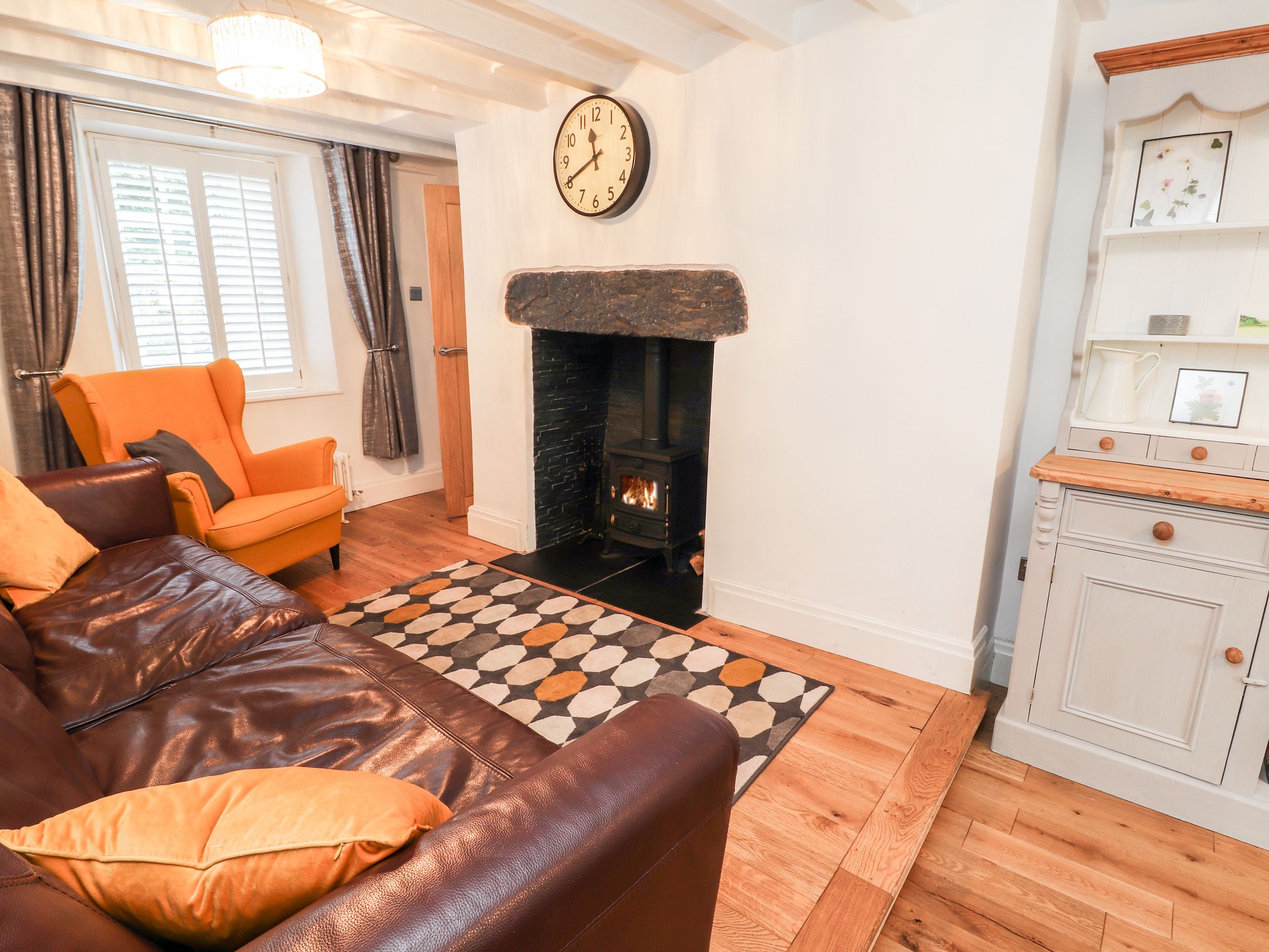Amenities Gas central heating. Electric oven and hob, fridge with ice box, washing machine, Smart TV, WiFi. Fuel, power and starter pack for woodburning stove inc. in rent. Bed linen and towels inc. in rent. Private driveway parking for four cars. Enclosed garden with patio, external utility and furniture. Enclosed garden with barbecue. Pet-friendly. Sorry, no smoking. Shop, pubs and restaurants 0.1 miles. Note: The bathroom is half way up the stairs. Note: Due to the limited access to the bathroom the property isn't suitable for those with limited mobility. This property accepts a minimum of 3 nights