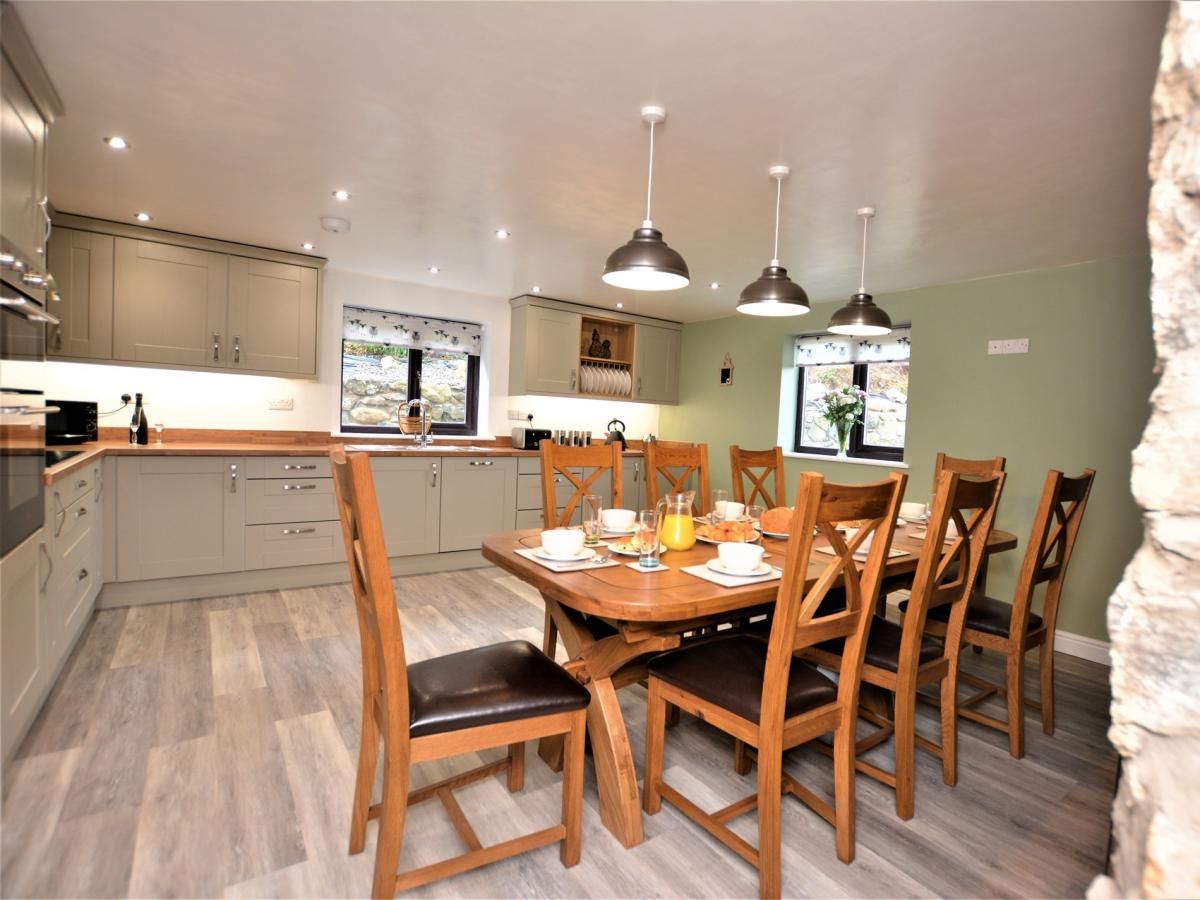 Exposed stone walls, high ceilings, exposed beams and the roaring wood burner create a truly warming ambience in the cosy lounge which invites you to hunker down on the comfy sofas and share stories of the day’s adventures. If you decide to eat in, the contemporary farmhouse-style kitchen/diner offers plenty of space for culinary geniuses to rustle up some tasty treats whilst the rest of the party enjoys a glass of something chilled seated around the dining table.
